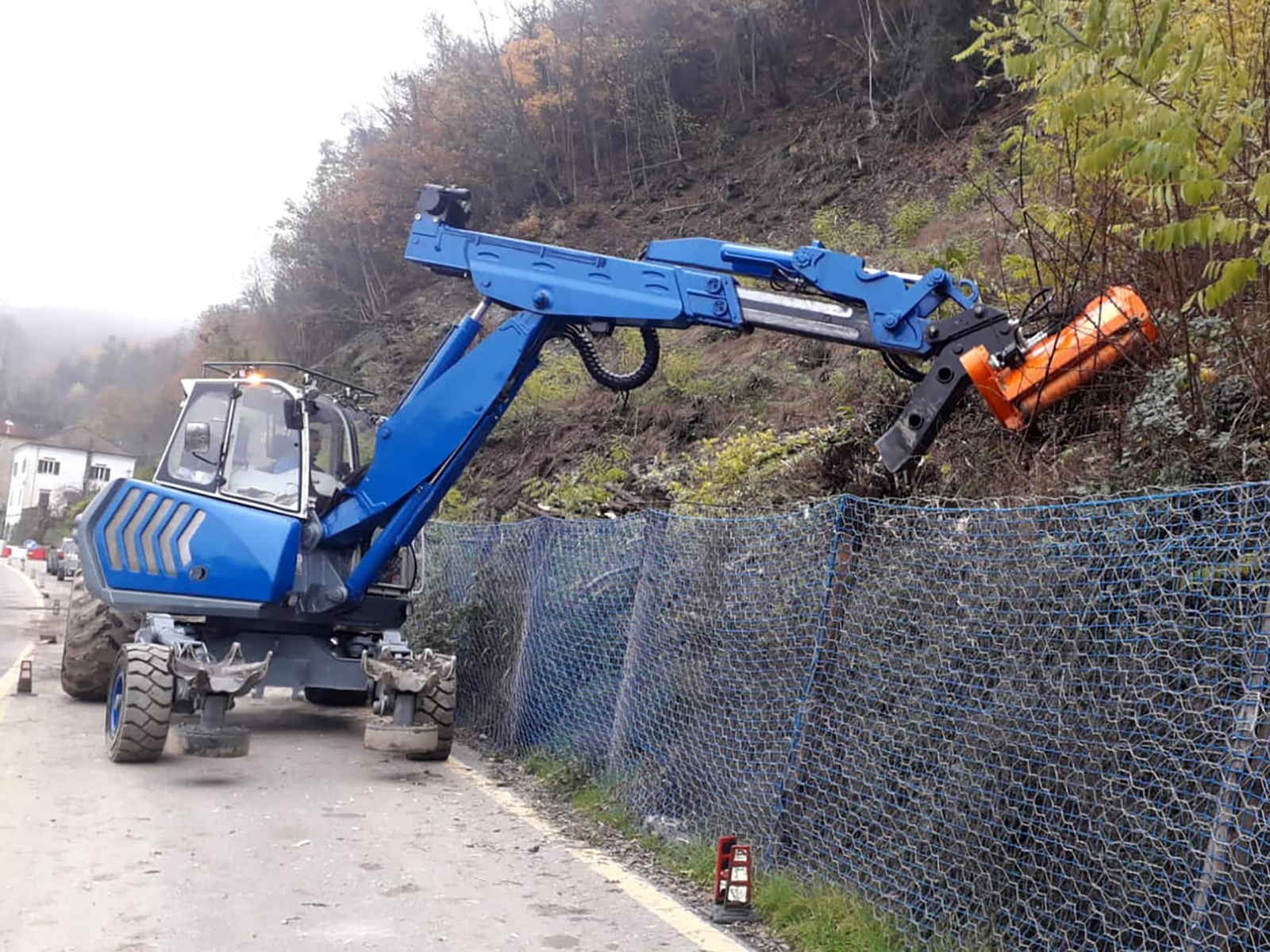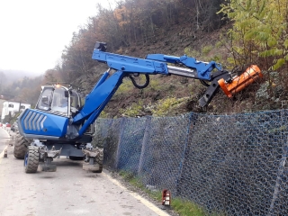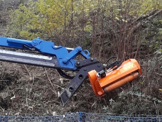 Mulčovač na bager DELEKS ARH-100 s pracovnou šírkou 100 cm, hmotnosťou 290 kg na kosenie trávy, stromov a kríkov do priemeru 5 cm. Vhodný pre 3 - 7 tonové bagre. 8 ks kladiviek s hmotnosťou 1,25 kg.
