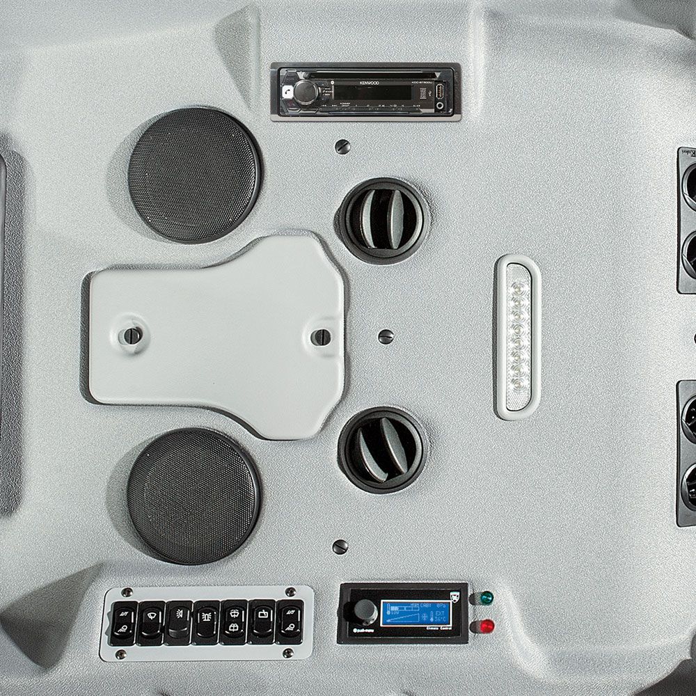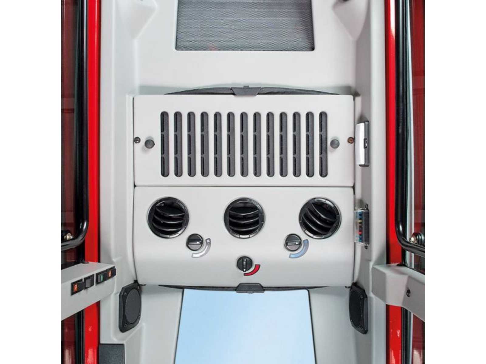 Elektrický systém je vybavený LED* osvetlením, ktoré zaručuje viditeľnosť v noci a na tmavých miestach, čím zaručuje bezpečnosť a kvalitu práce. Kompaktná kabína je vnútorne pohodlná. Jej aerodynamický profil a kónický tvar sú navrhnuté tak, aby uľahčili odpojenie od traktora.