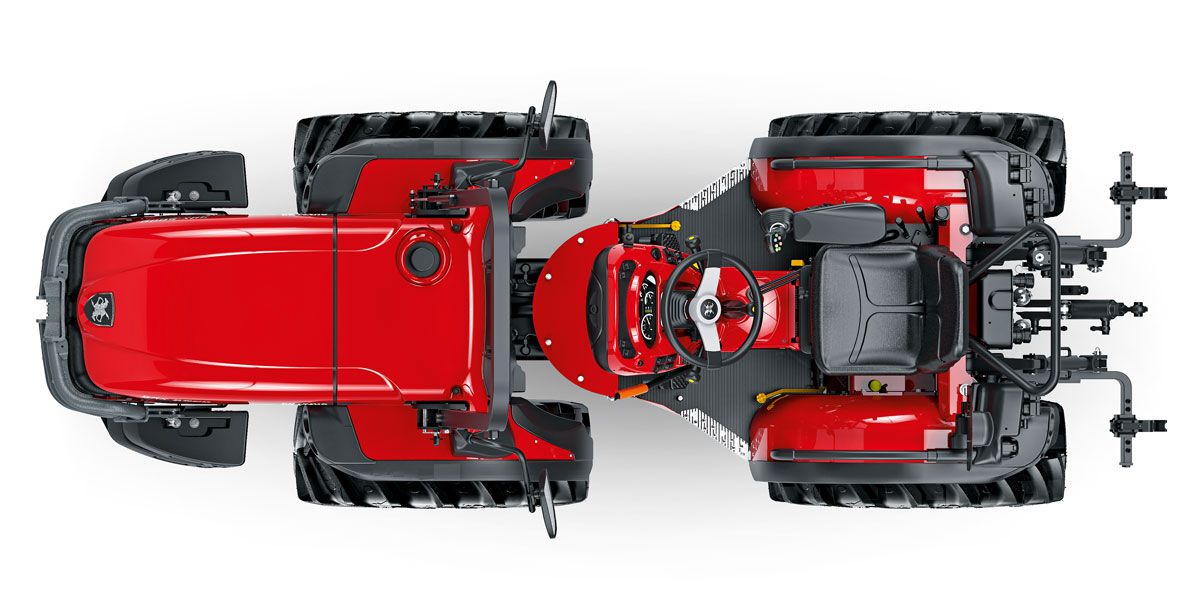 Kabína je odhlučnená a vybavená klimatizáciou. Obsluhe na palube ponúka 360° všestranný výhľad najmä na zariadenie a terén okolo traktora, a to aj pri cúvaní a práci medzi úzkymi radmi.