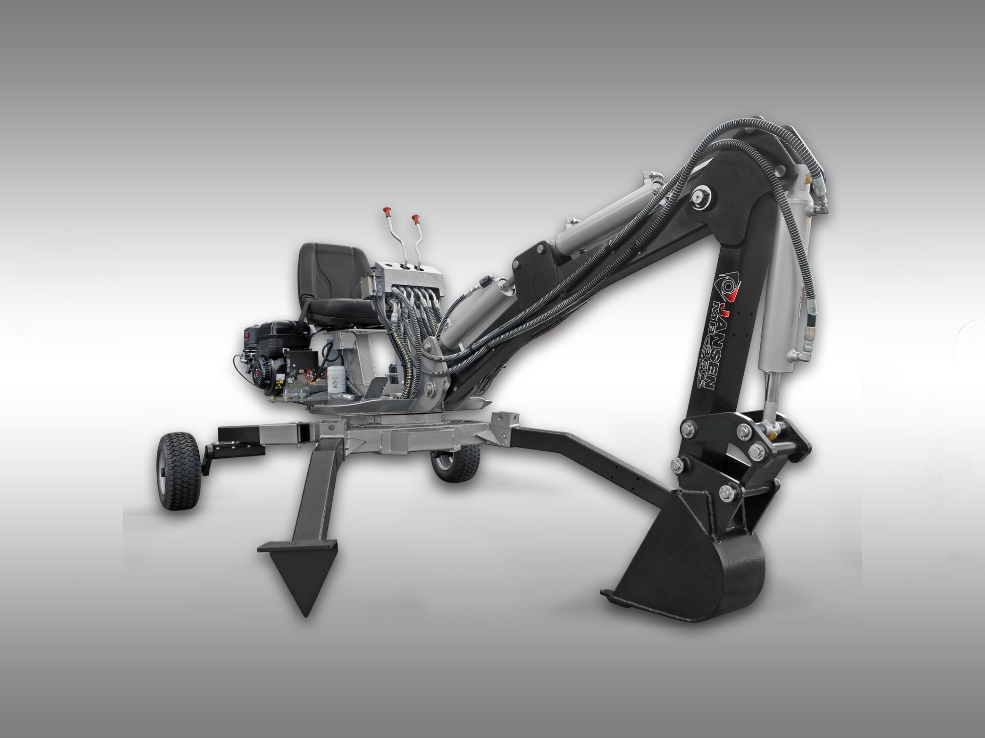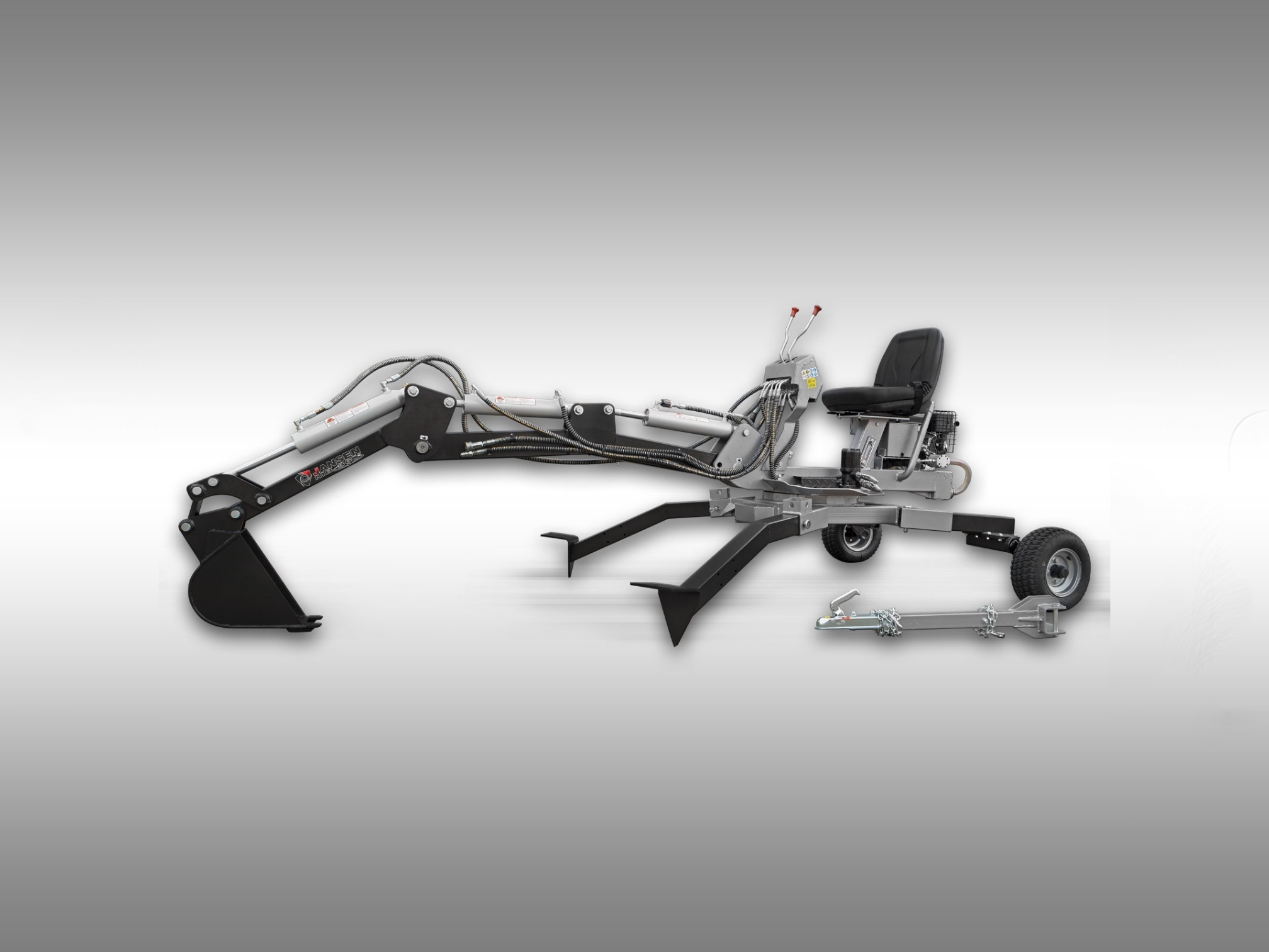 • JANSEN MB-360° je vybavený odnímateľným ojom s uchytením s guľovou hlavou, čo vám umožní ľahko a bezpečne prepravovať rýpadlo z bodu A do bodu B.