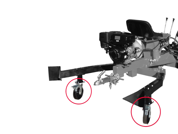 • Robustné podpery zaisťujú stabilitu aj na nerovnom teréne. Aby sa zariadenie dostalo do prepravnej polohy, kolesá a podpera sa vymenia spredu dozadu.