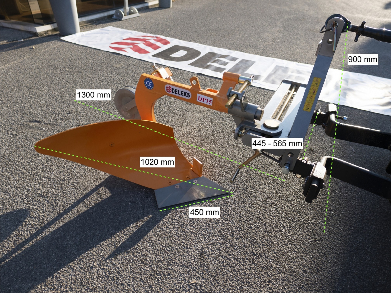 Jednodielny pluh DP-35 pre traktory s výkonom 25 - 45 HP. Tento pluh je určený na obrábanie hlinitých alebo piesočnatých pôd a je kompatibilný s najbežnejšími značkami dostupných traktorov. Dodatočne zvárané zosilňujúce časti rámu na ramene na zosilnenie namáhaných bodov.