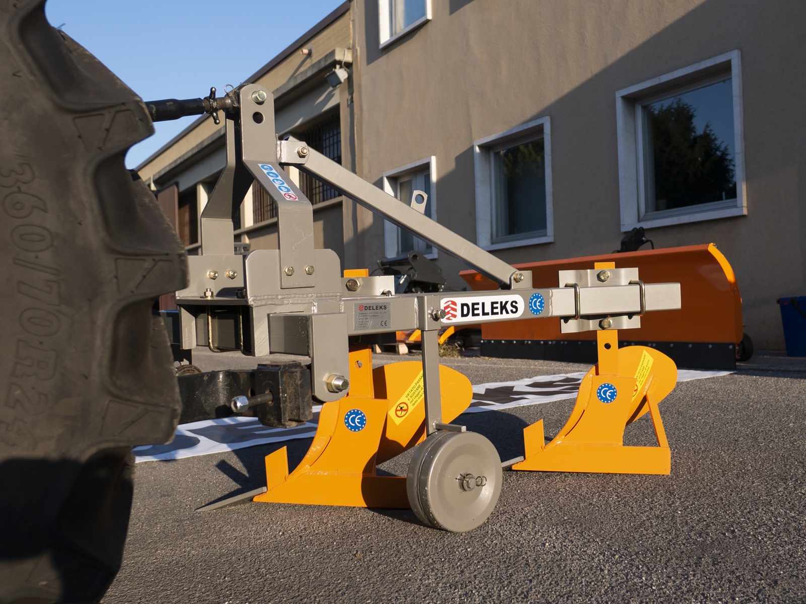Dvojdielny pluh DDP-30 pre traktory s výkonom 25 - 40 HP. Zdvojnásobuje orbu, čím šetrí čas a palivo. Dodatočne zvárané zosilňujúce časti rámu na ramene na zosilnenie namáhaných bodov.