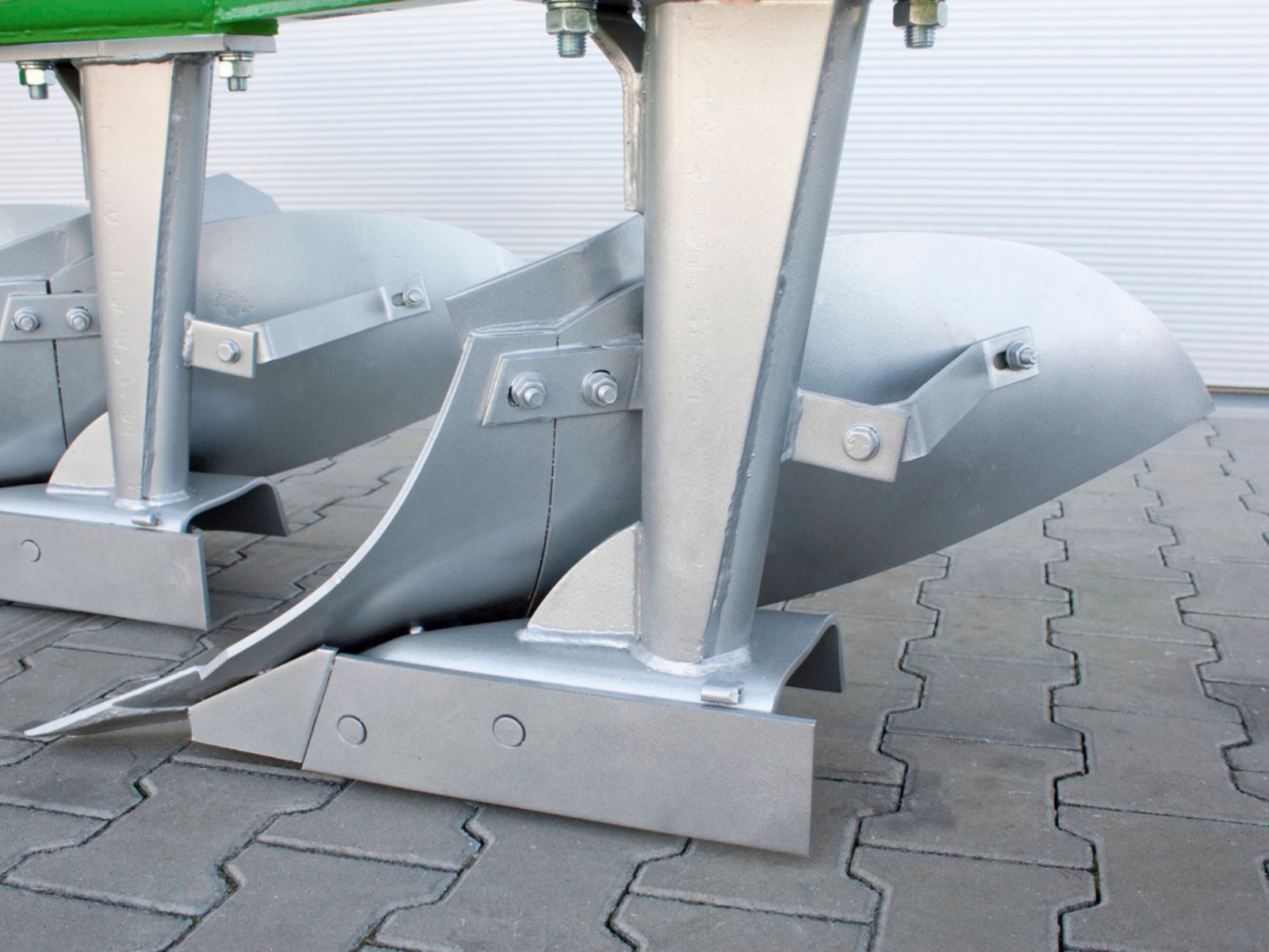 - Pluhové telesá sú vybavené odhŕňačmi a radličkami z bórovej ocele so zvýšenou pevnosťou. Nad odhrňovačom je namontovaný pásový štiepkovač, ktorý je určený na prerezanie vrchnej vrstvy zeminy a jej vyhadzovanie na dno brázdy a tým lepšie zakrývanie rastlinných zvyškov.