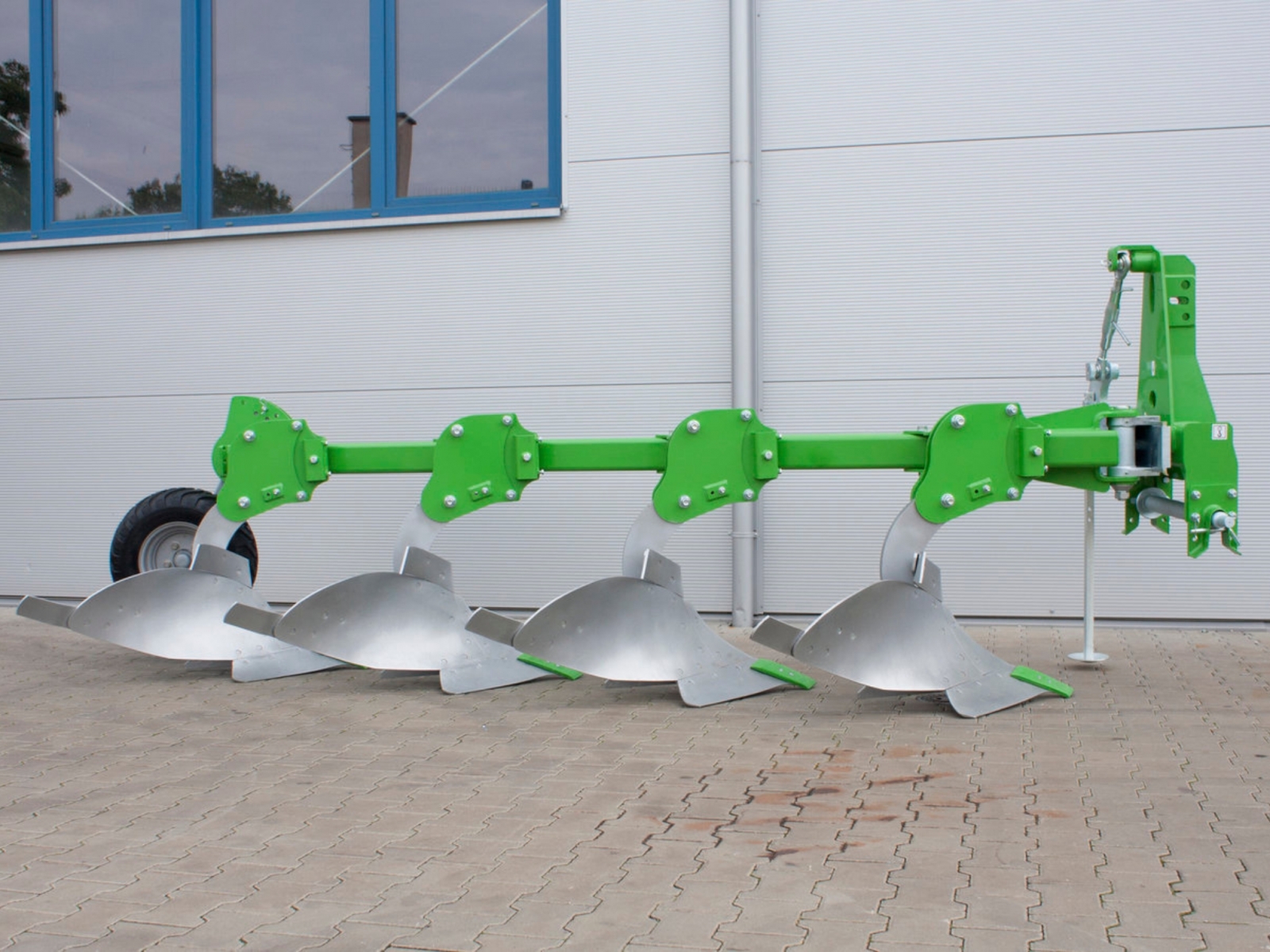 - Hlavný profil rámu je 120 x 120 mm . Šírka korby pluhu sa nastavuje v krokoch do troch polôh ( 30 cm - 38 cm - 45 cm ).