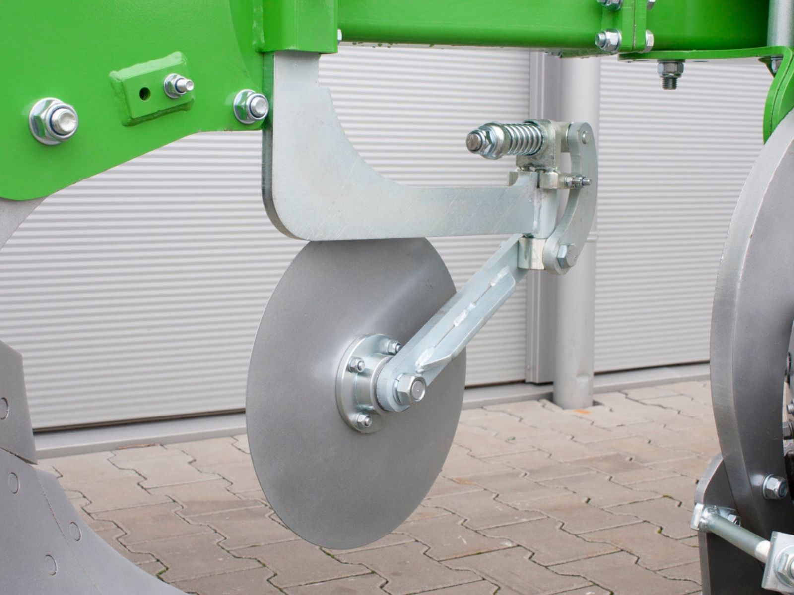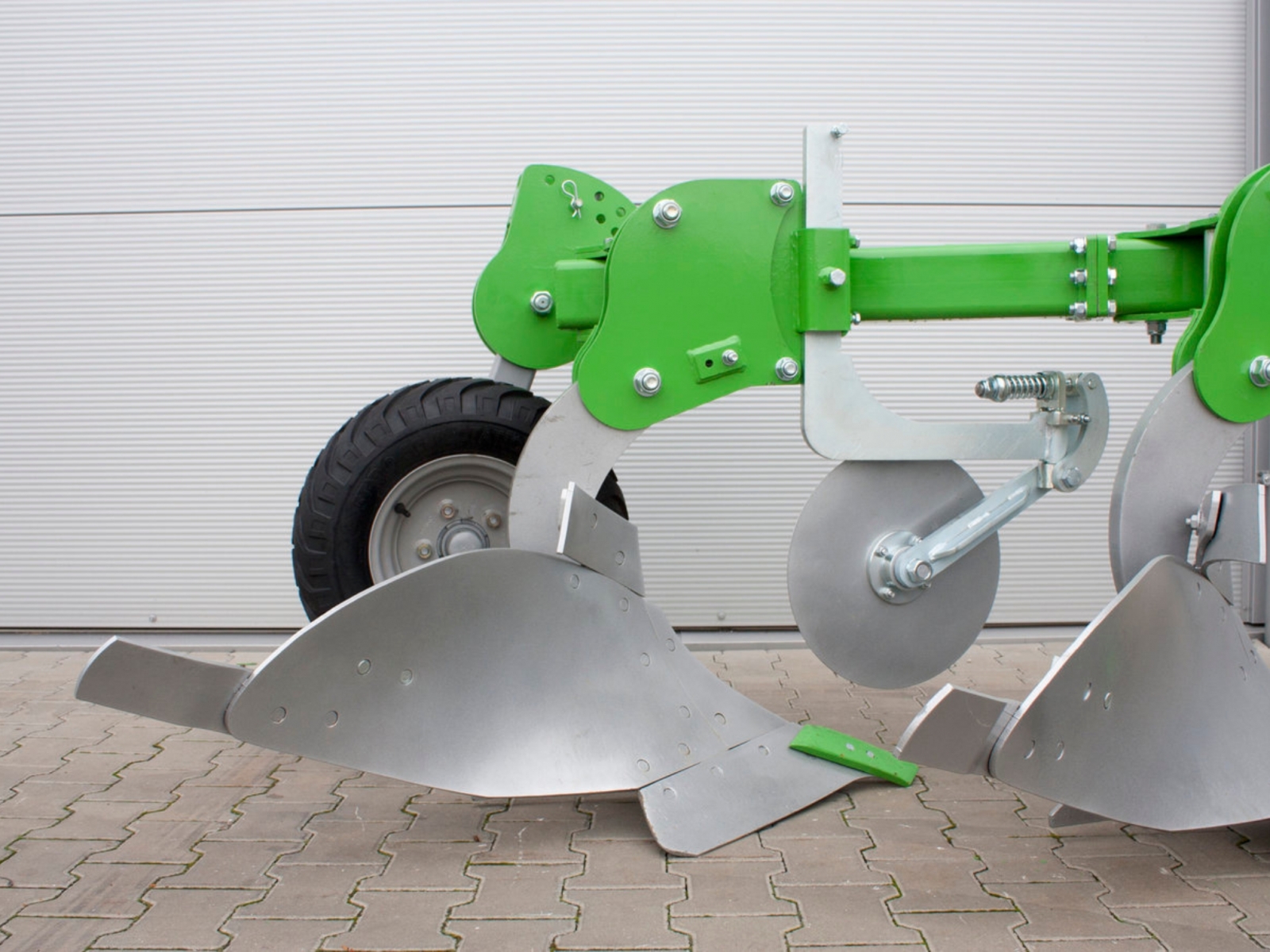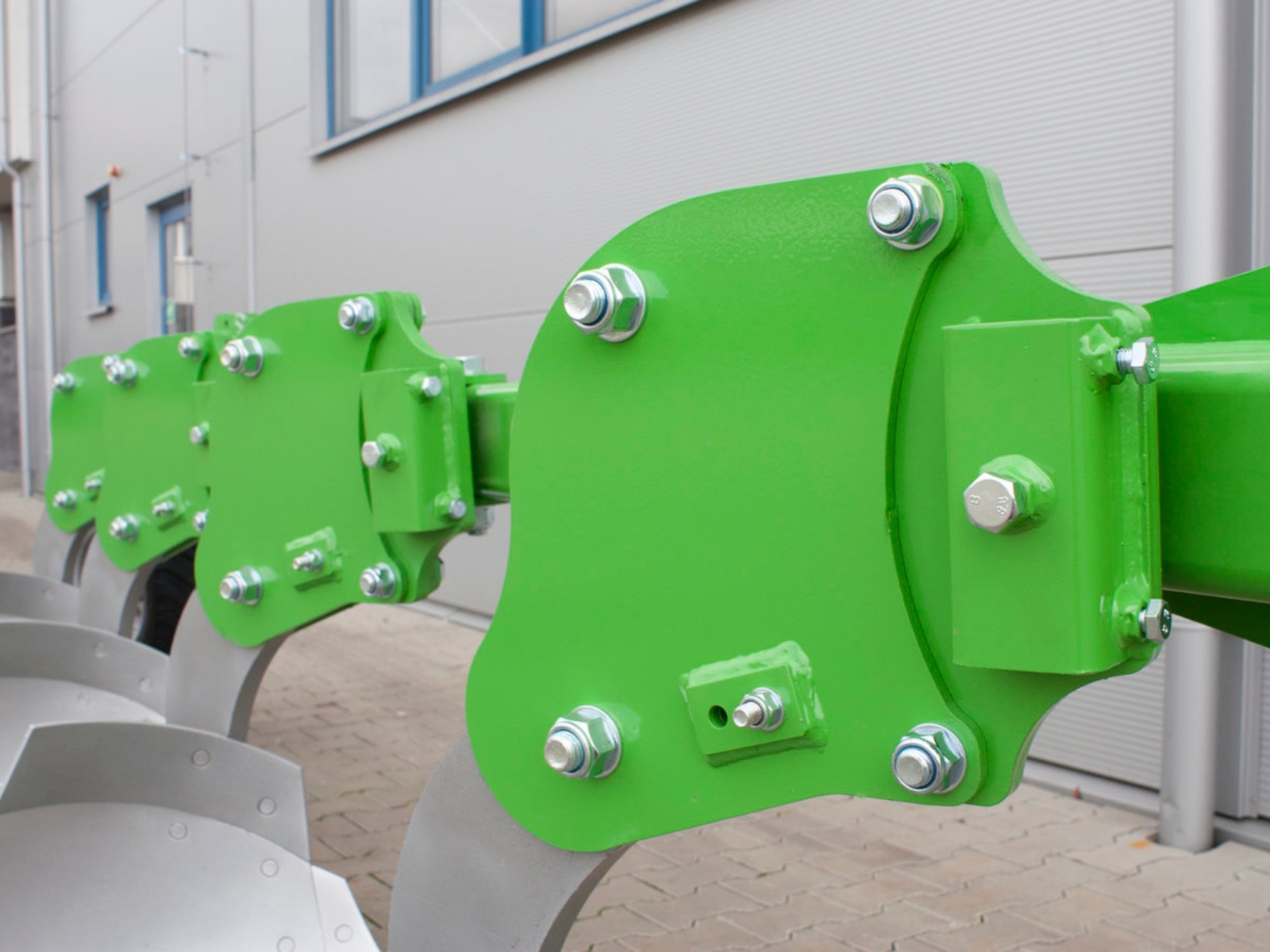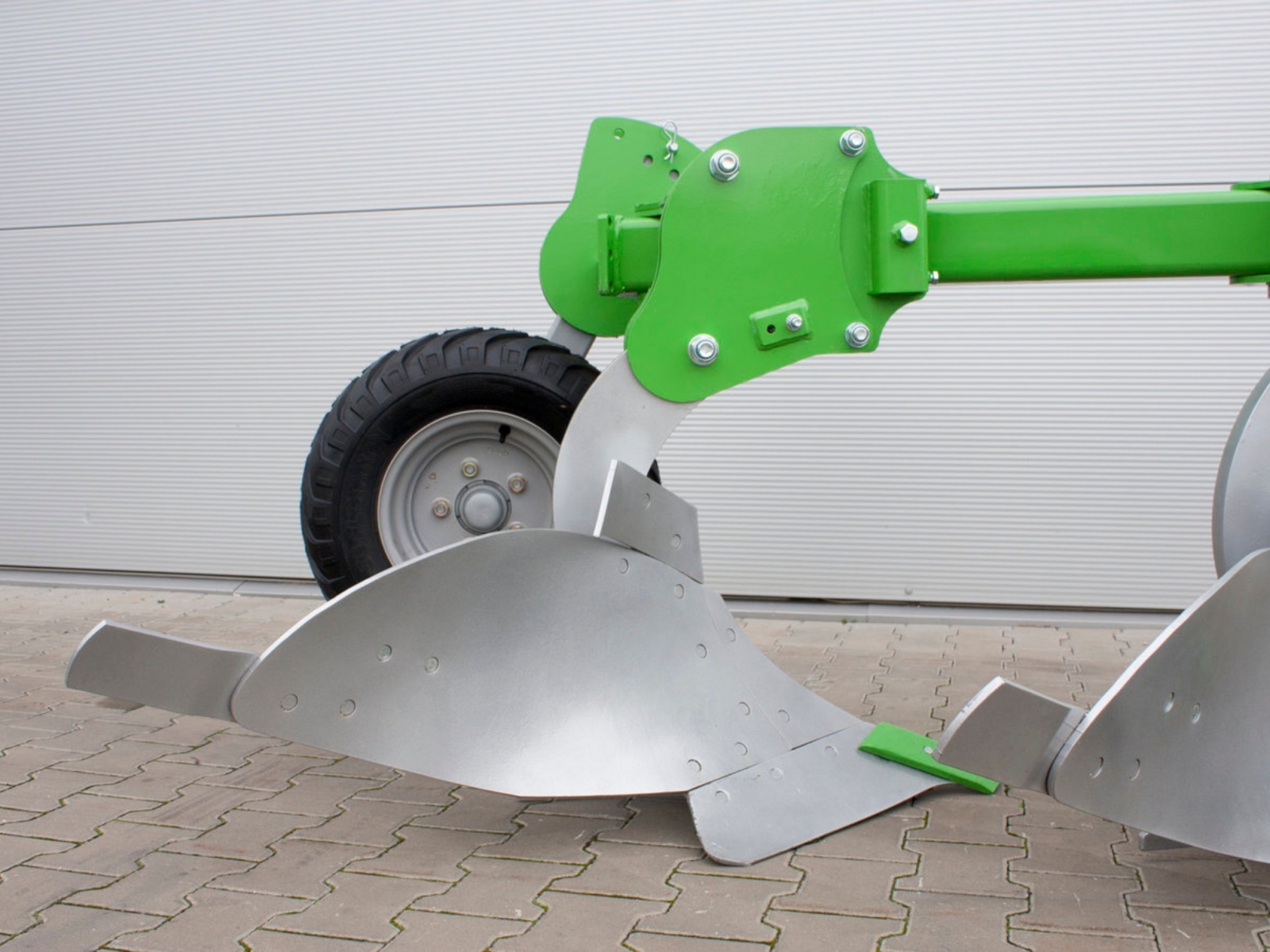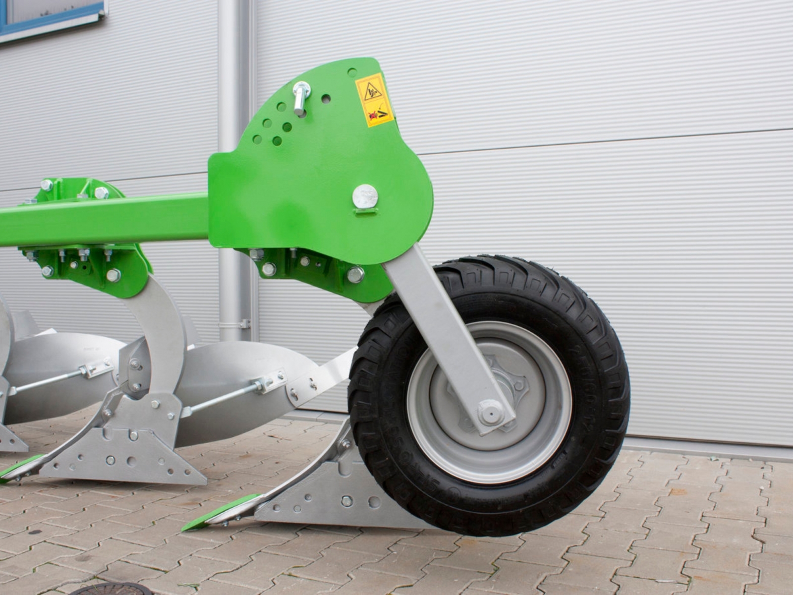 - Stroj je štandardne vybavený ochranou proti kameňom vo forme strižnej skrutky. Zaručuje dlhšiu životnosť pluhu