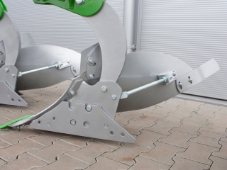 - Nastavenie sa vykonáva jednoducho správnym prepnutím nastavovacej skrutky na každom sedle telesa na ráme pluhu. Nastavenie samotného rámu (zarovnanie) pre jednotlivé pracovné šírky sa vykonáva pomocou napínača.
