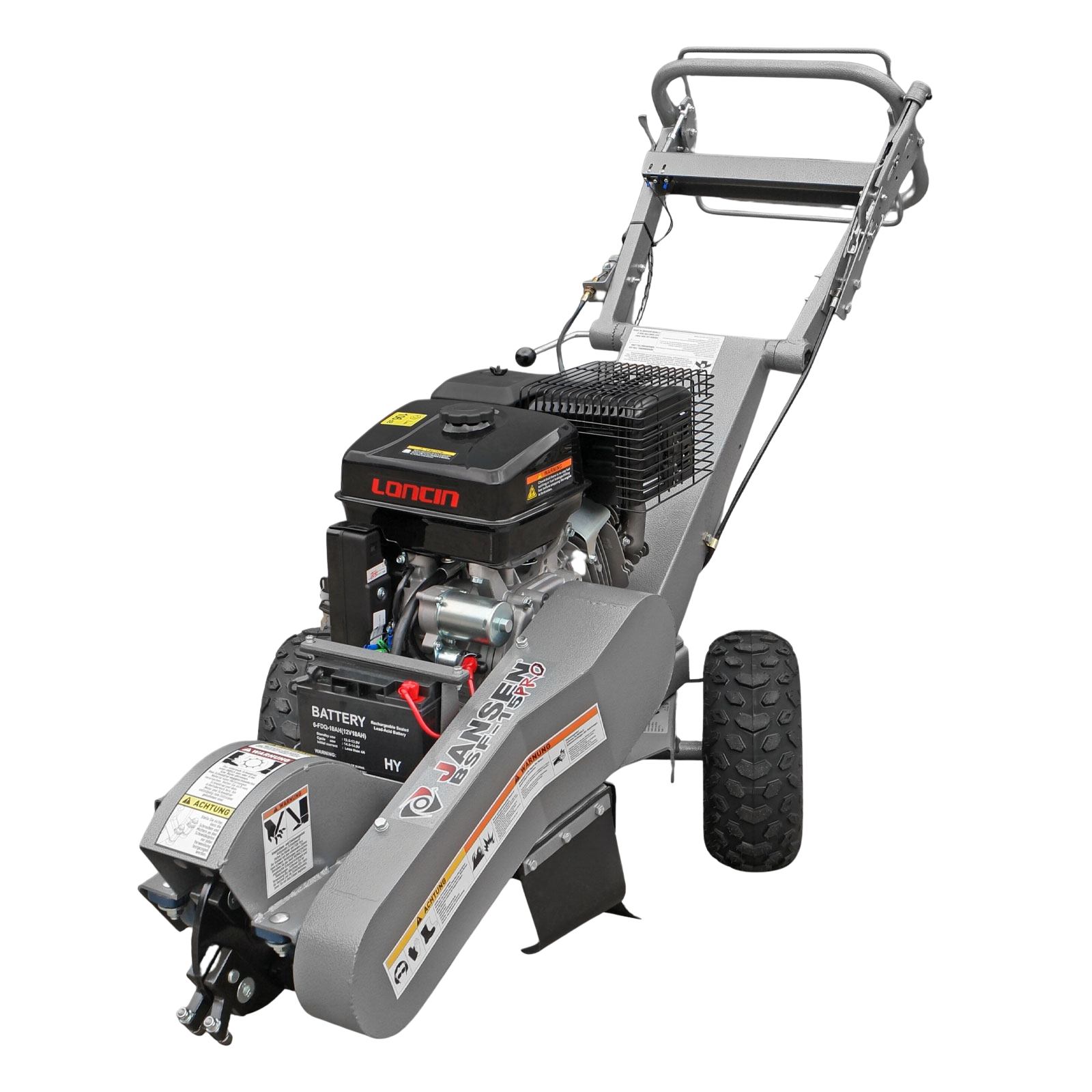 Pňová fréza JANSEN BSF-15pro je novší nástupca osvedčeného modelu JANSEN BSF-13, len výkonnejší, efektívnejší a sofistikovanejší v každom ohľade. Vďaka výkonnému benzínovému motoru LONCIN s výkonom 15 HP a pevnej konštrukcii je táto fréza na pne ideálna pre náročné práce – na súkromné ale aj profesionálne použitie. Vďaka kompaktnému dizajnu so šírkou iba 750 mm sa BSF-15pro zmestí takmer cez akékoľvek dvere a zároveň zostáva mimoriadne obratná. Hlava brúsky je vybavená 8 extra kalenými brúsnymi nožmi z karbidu volfrámu, ktoré sú obzvlášť odolné a jednotlivo vymeniteľné. Pňová fréza ponúka rozsah rezania až do hĺbky 500 mm (v závislosti od uhla nábehu) so šírkou rezu 55 mm.