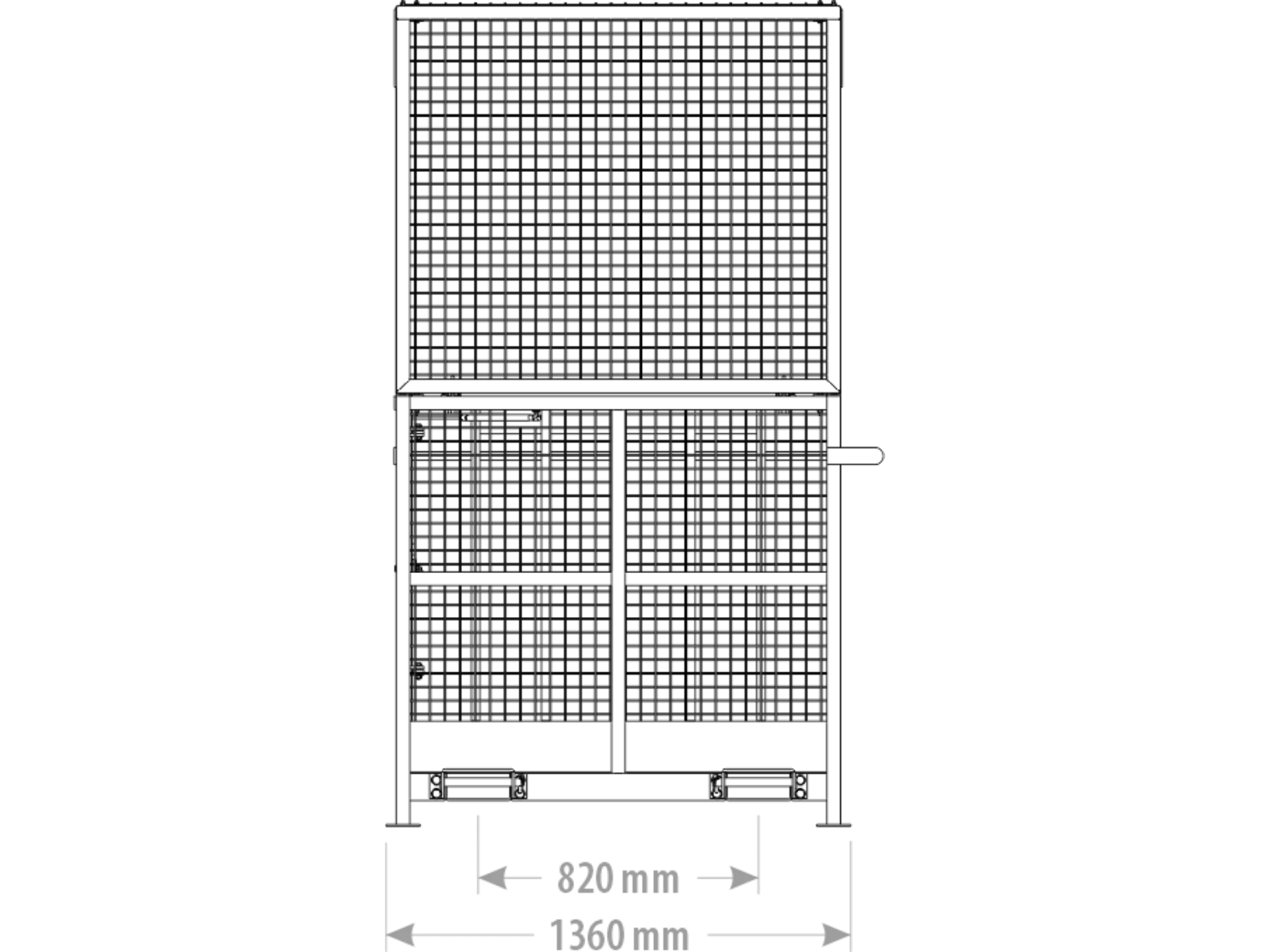 Otvory pre paletizačné vidly s bezpečnostným poistným kolíkom.