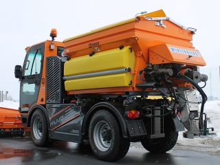 SOLID XG je kompaktný sypač soli alebo inertného materiálu vrátane možnosti zvlhčenia soľankovým postrekom.