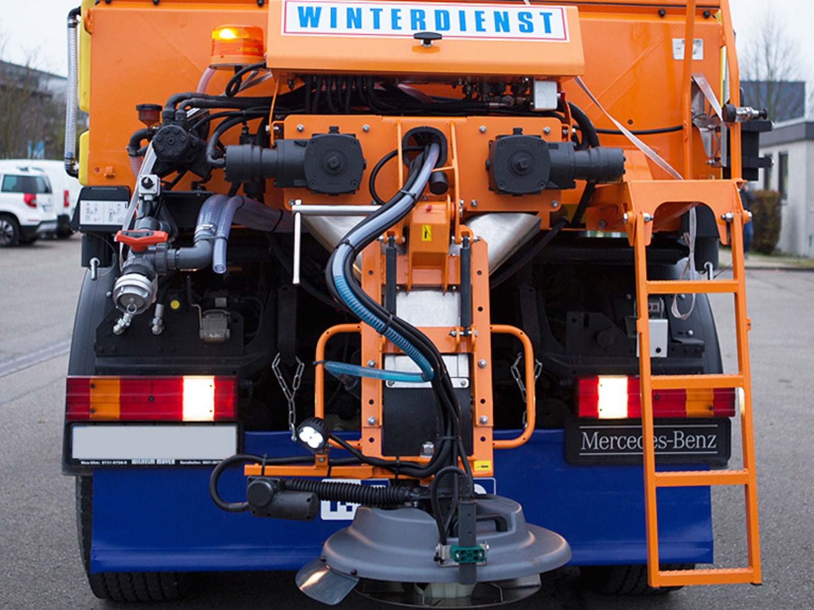 Montáž soľankových nádrží slúži na ďalšie zlepšenie účinnosti rozmetania jedného tuhého materiálu alebo zmesi dvoch tuhých látok.