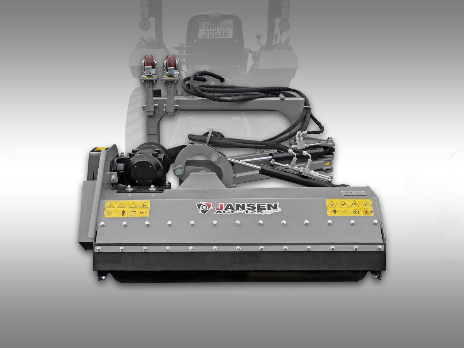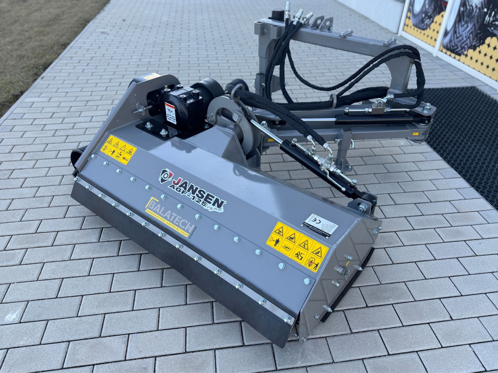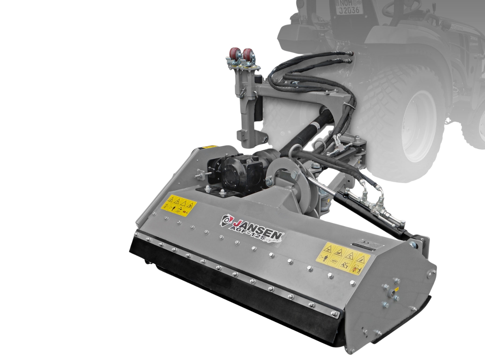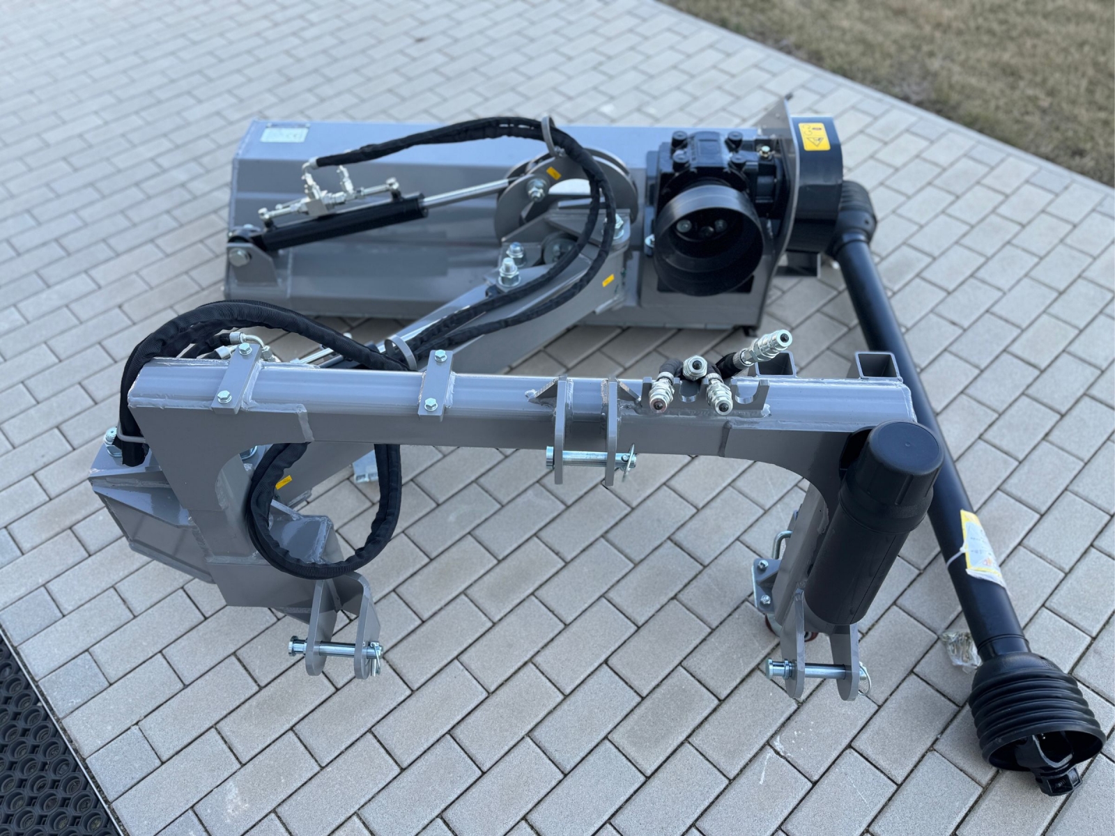 Na nastavenie sú potrebné hydraulické prípojky na traktore (2x dvojčinné), pretože mulčovač má hydraulické valce na posunutie a naklonenie. Ak sa rozhodnete pre voliteľnú doplnkovú súpravu, budete potrebovať iba 1x dvojčinnú hydraulickú prípojku a 1x 12-voltovú elektrickú prípojku. (Zástrčka nie je súčasťou balenia!)