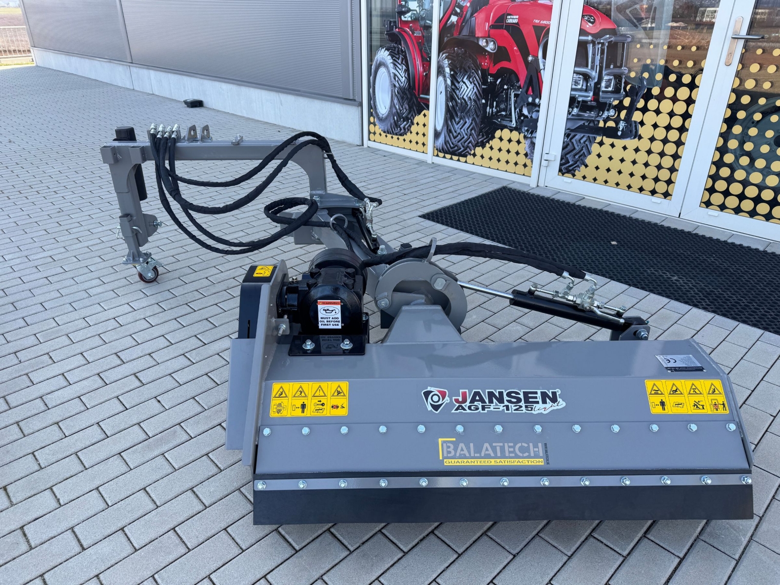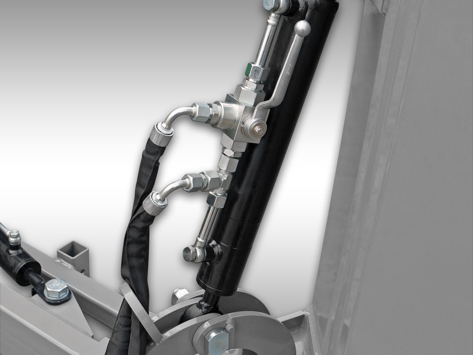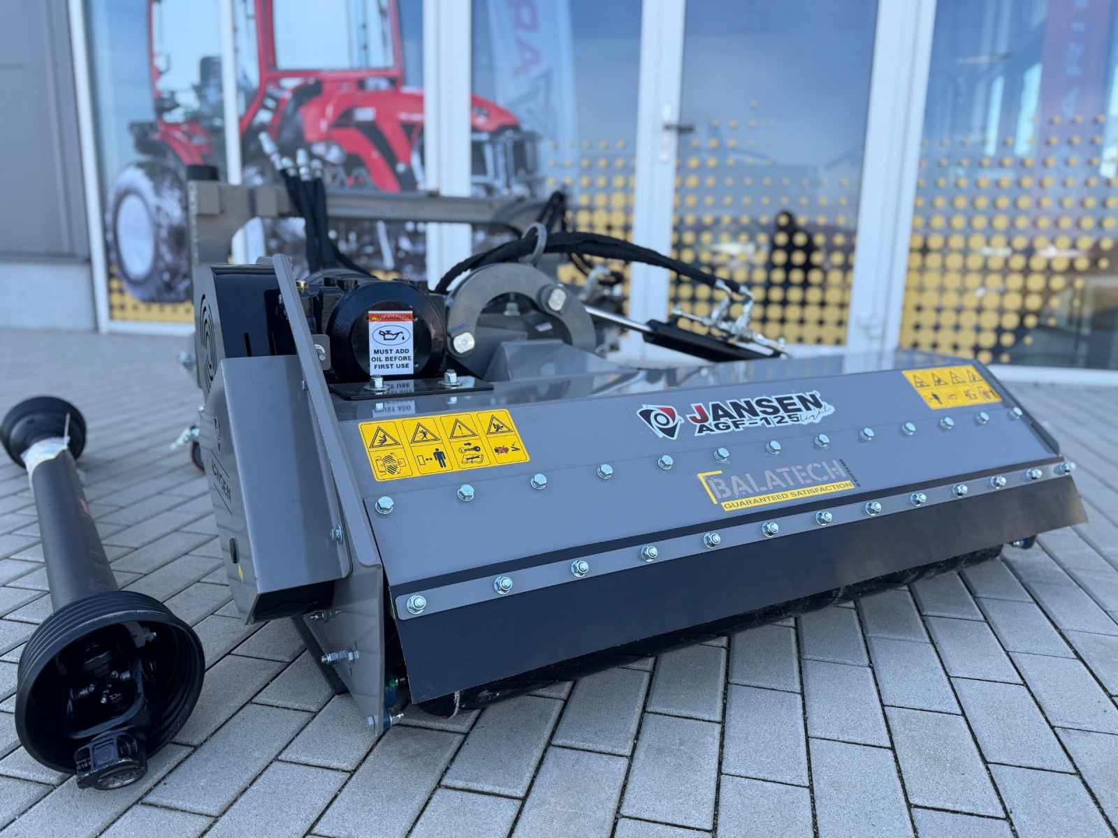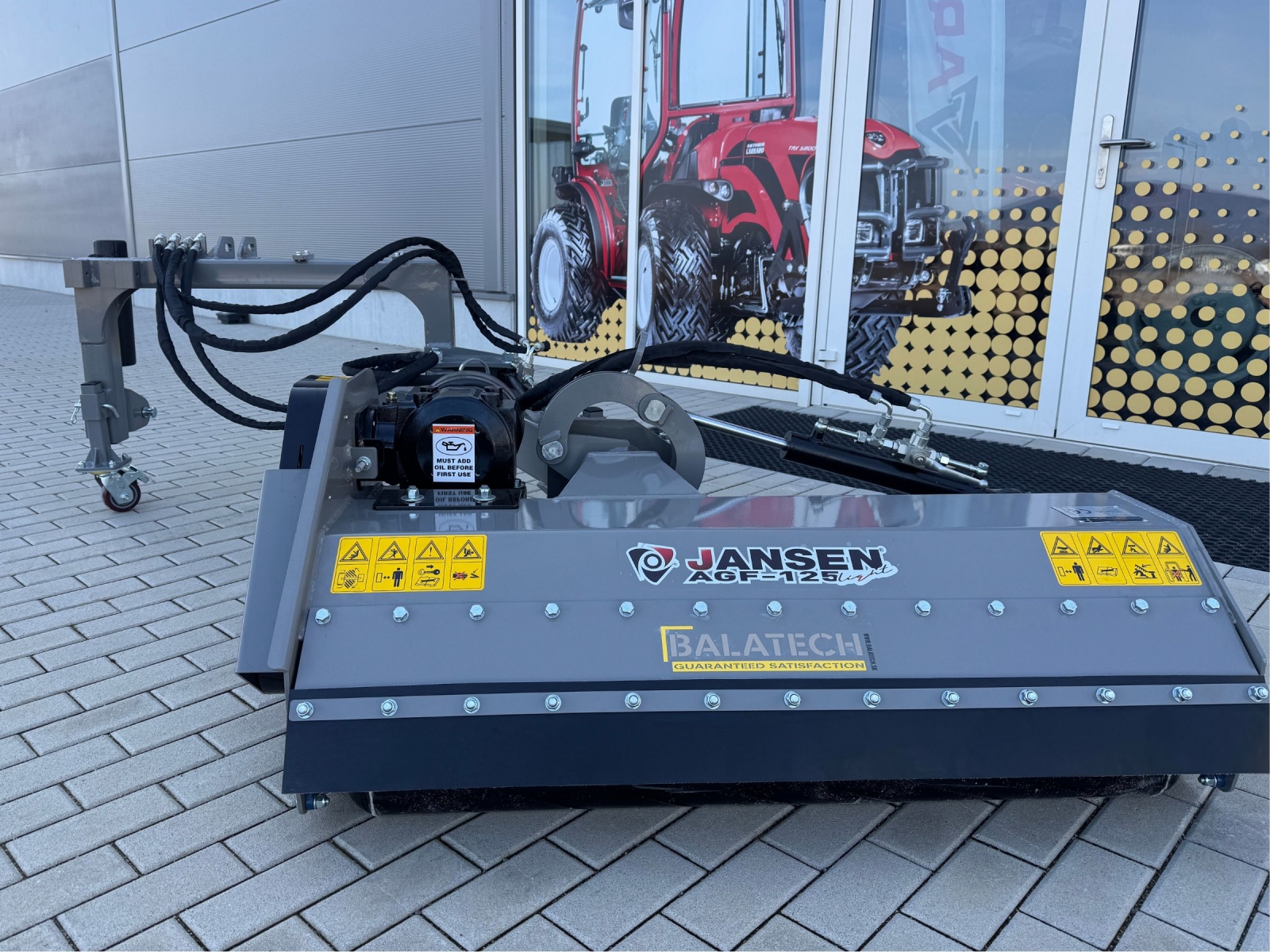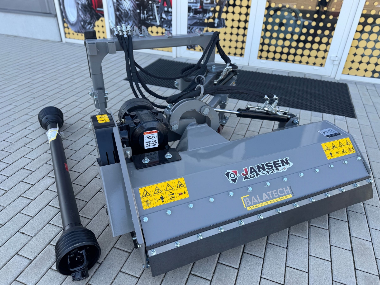 Na nastavenie sú potrebné hydraulické prípojky na traktore (2x dvojčinné), pretože mulčovač má hydraulické valce na posunutie a naklonenie. Ak sa rozhodnete pre voliteľnú doplnkovú súpravu, budete potrebovať iba 1x dvojčinnú hydraulickú prípojku a 1x 12-voltovú elektrickú prípojku. (Zástrčka nie je súčasťou balenia!)