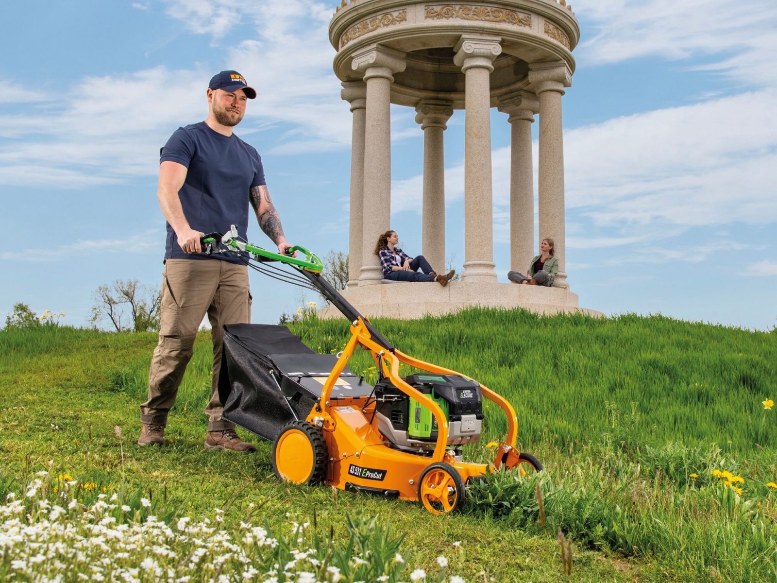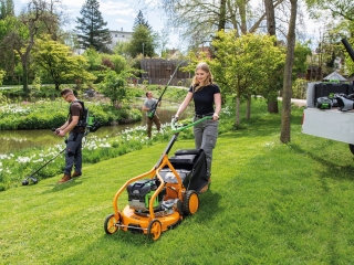 Otvorený tvar riadidiel v tvare V s koncepciou ovládania vyvinutou spoločnosťou AS-Motor odbúrava námahu pre obsluhu stroja: ľavou rukou možno plynule regulovať rýchlosť od 3,0 do 4,5 km/h počas práce pomocou páky Variomatic. Pravá ruka riadi a ovláda spojku noža, pohon pojazdu a parkovaciu brzdu.