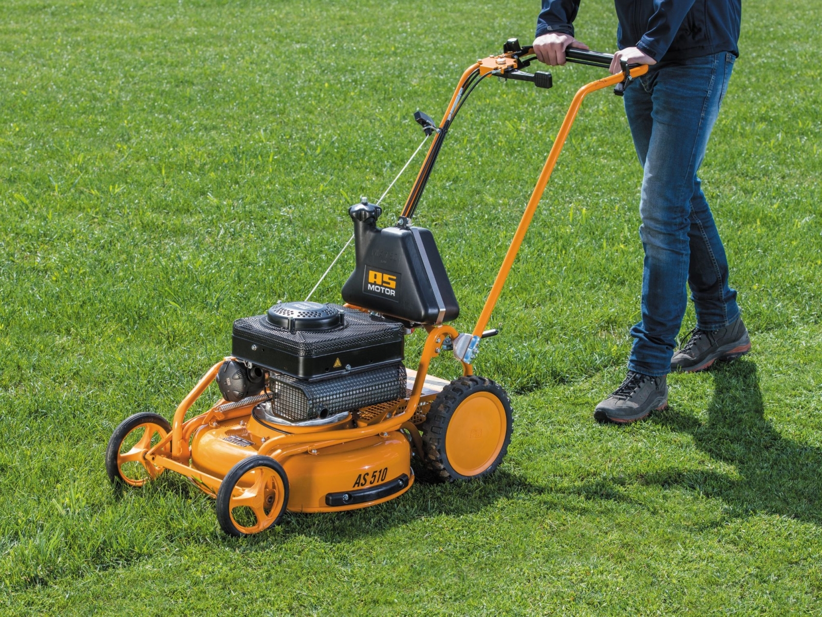 Kosačka sa ľahko ovláda otvorenými riadidlami v tvare V vyvinutými spoločnosťou AS-Motor: ľavá ruka reguluje rýchlosť od 3,0 do 4,5 km / h, keď je stroj v pohybe. Pravá ruka riadi a aktivuje spojku noža, trakčný pohon a parkovaciu brzdu.