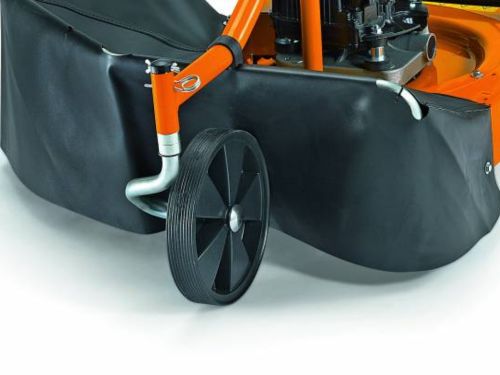 Tretie ložisko kľukového hriadeľa a trecie disky na noži chránia motor v prípade nárazu do prekážky. Veľké kolesá s agresívnym dezénom ponúkajú ideálnu trakciu pri rýchlostiach do 3,0 km / h.