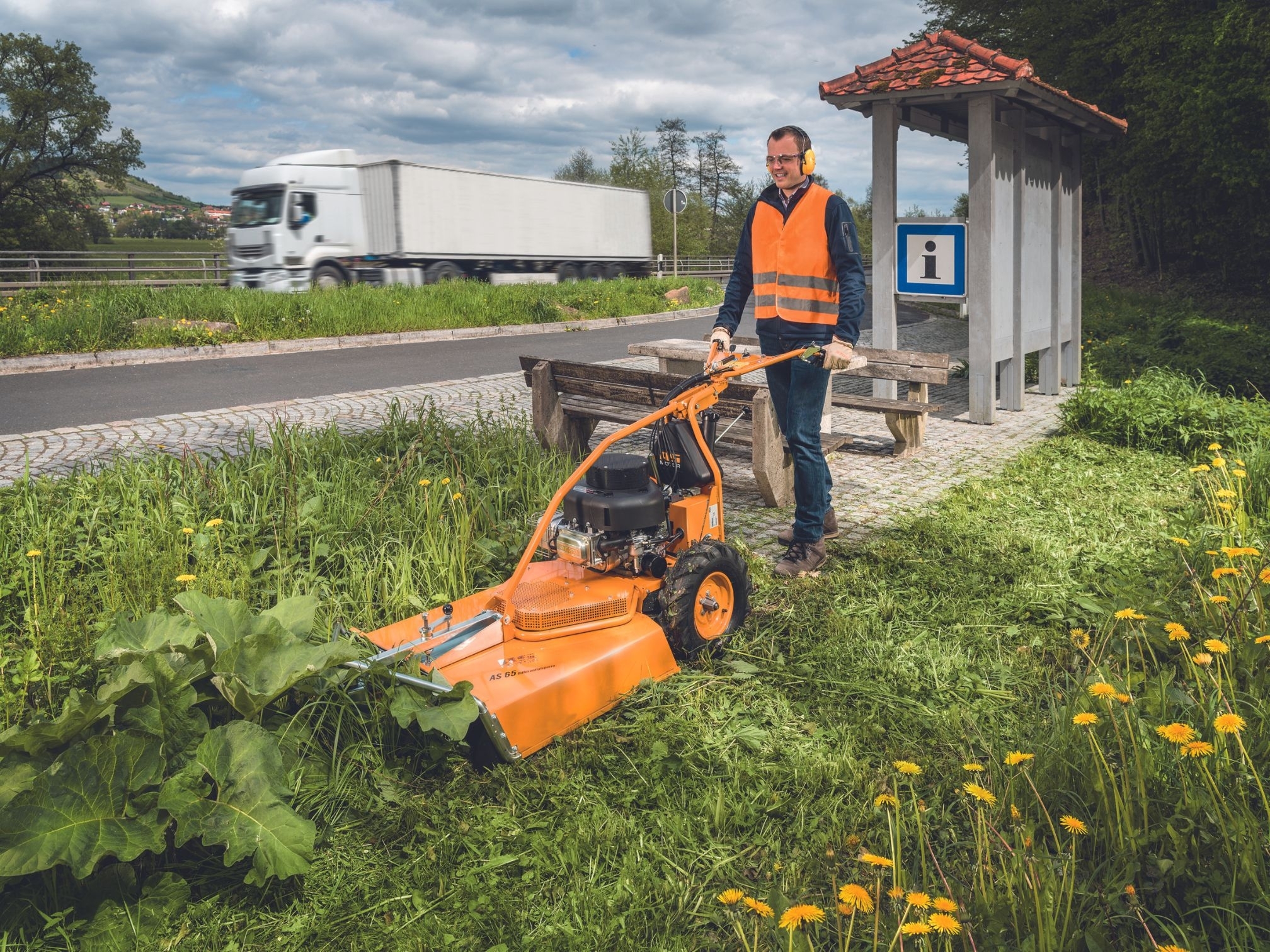 K pohonu slúži päťstupňová manuálna prevodovka so spiatočkou (2,4 km / h), ktorá pokrýva rýchlostný rozsah od 1,6 do 5,1 km / h. Pracovné výkony dosahujúce 3 300 m² za hodinu sú možné vďaka výkonnému motoru Briggs & Stratton s výkonom až 13,0 HP, trakčným pohonom a šírkou záberu 65 cm.