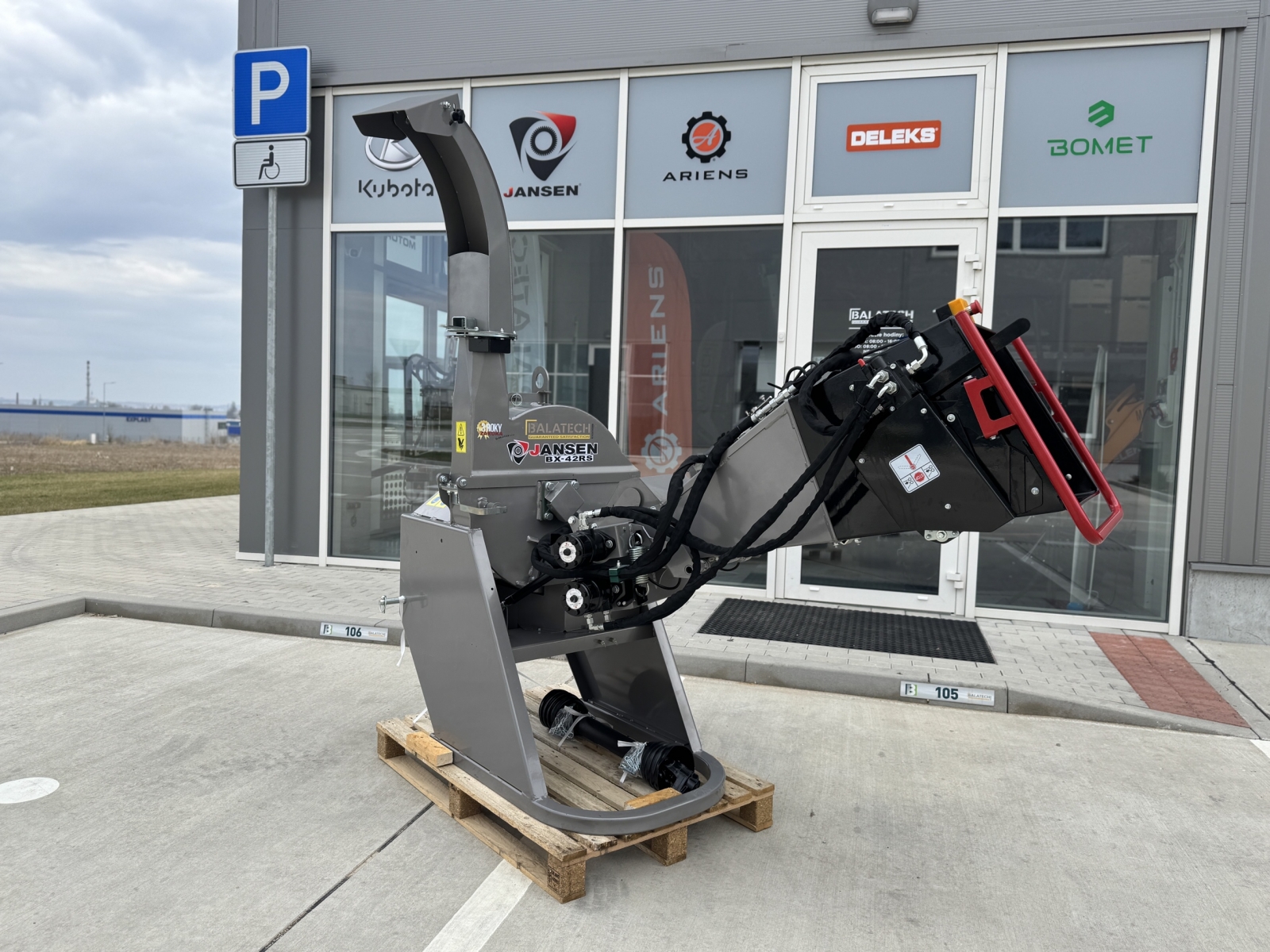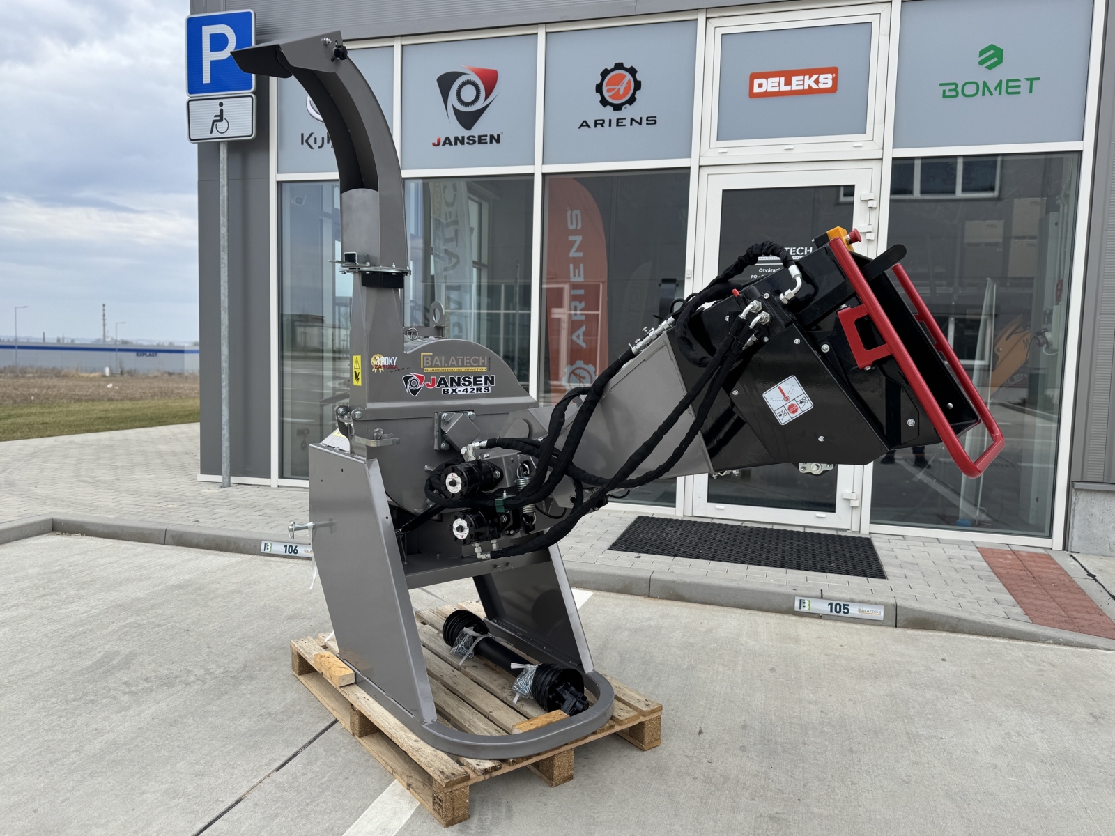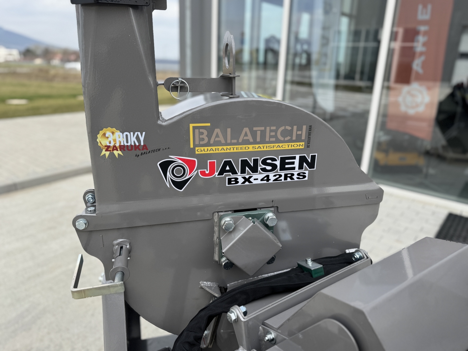 • Štiepkovač za traktor JANSEN BX-42RS je vybavený pôsobivými funkciami, ktoré zaisťujú efektívne a výkonne drvenie dreva. Maximálny priemer drveného materiálu 10 cm. Vhodný pre traktory s výkonom do 80 HP. Plynule nastaviteľná rýchlosť podávacích valcov umožňuje prispôsobenie rôznym priemerom drveného materiálu.