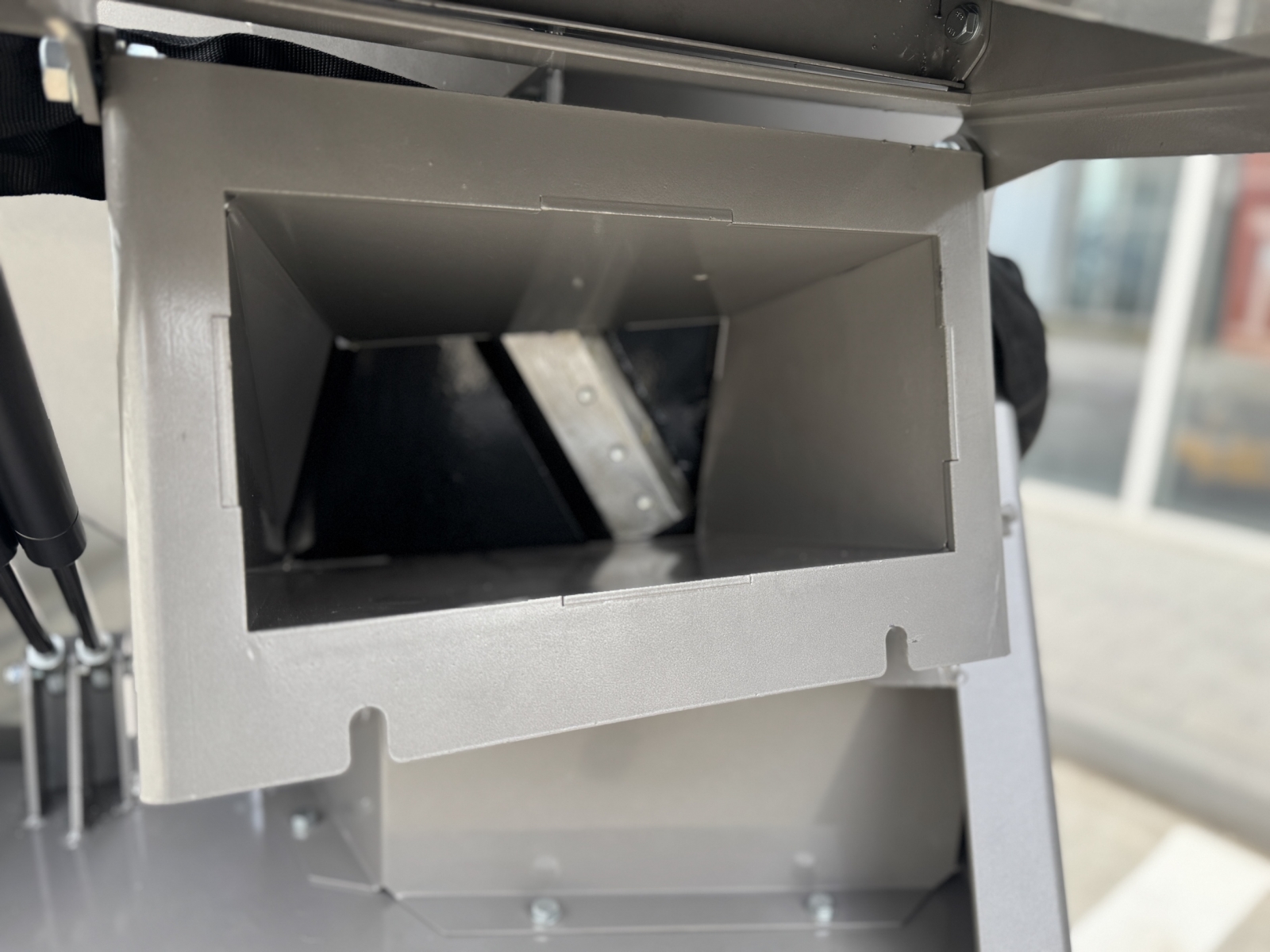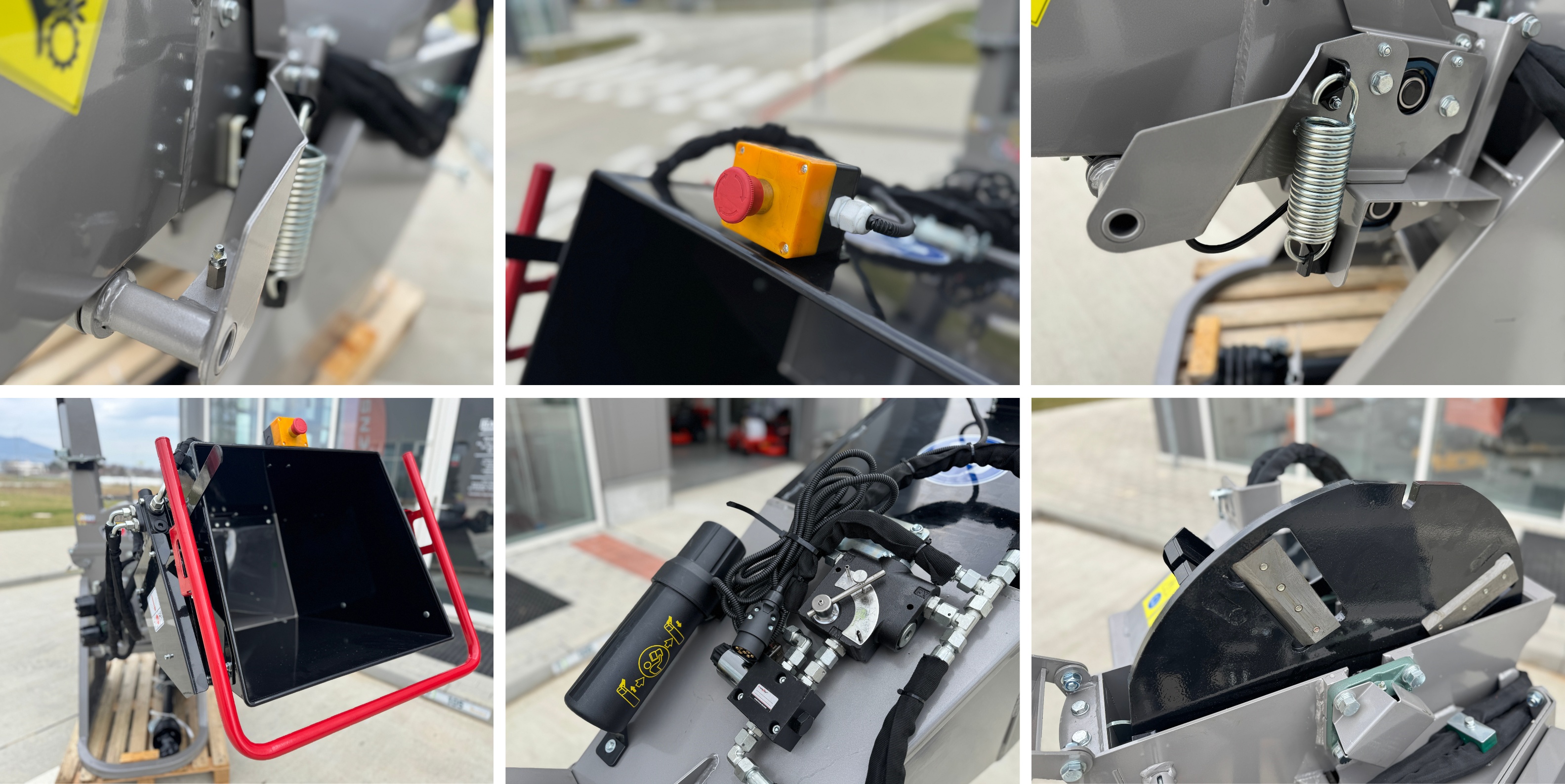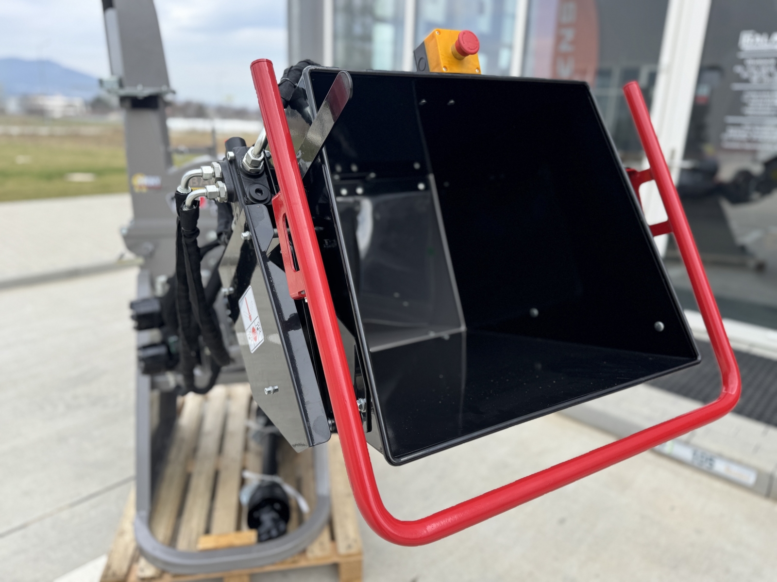 Ľahko sklopný zásobník a otočný vyhadzovací komín ponúkajú jednoduché možnosti prepravy a prispôsobenie rôznym pracovným podmienkam. Voliteľne je k dispozícii predĺženie vyhadzovacieho komína o 50 cm.