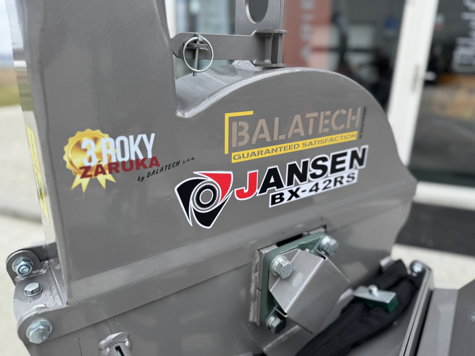 S kardanovým hriadeľom, ktorý je súčasťou dodávky a integrovaným poistným kolíkom, je JANSEN ® BX-42RS vhodný na použitie s traktormi do 80 HP. Pevná konštrukcia zaisťuje bezpečný a spoľahlivý výkon. Minimálny výkon motora vášho traktora by mal byť aspoň 25-30 HP a otáčky vývodového hriadeľa musia byť 540 ot./min.