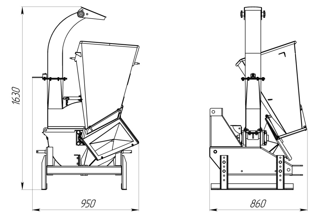 - Zdvihnutím štiepkovača na hydraulickej spojke môžete zvýšiť výšku nakladania.
