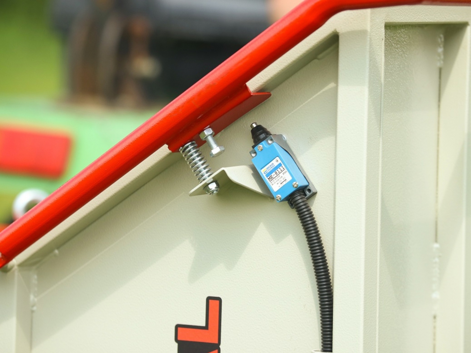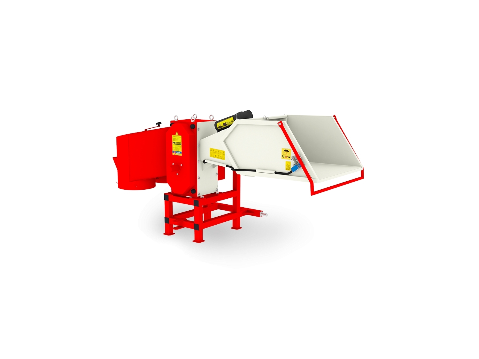 - Vstupný zásobník je vybavený clonou z priehľadného PVC na ochranu obsluhy pred trieskami počas prevádzky.