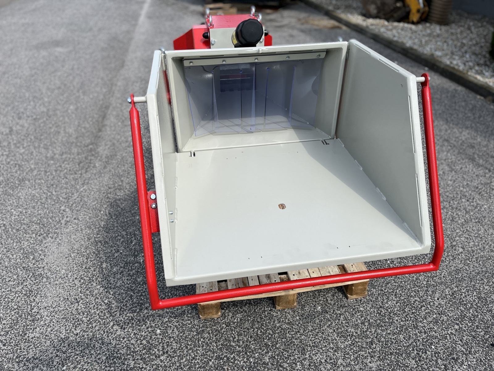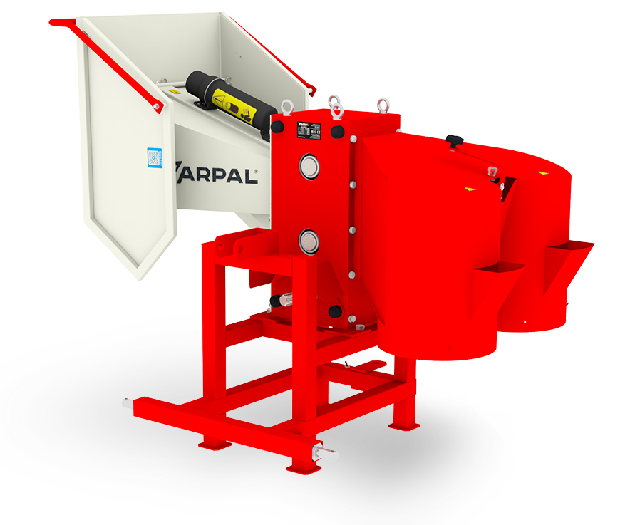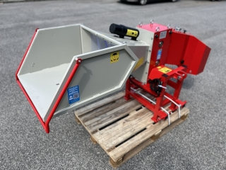 2 komíny, ktorým vystupujú narezané špalíky obsahujú nástavec na uchytenie vreca (50 x 80 cm) pre jednoduché balenie narezaných špalíkov. Posuvný spínač, ktorý vám umožňuje zvoliť požadovaný smer vysypania.