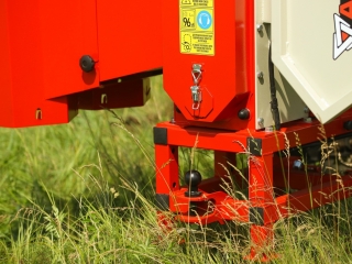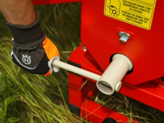 - Na pripojenie traktora odporúčame použiť kardanový hriadeľ triedy T5 s trecou spojkou, ktorá chráni špalíkovač a traktor pred preťažením.