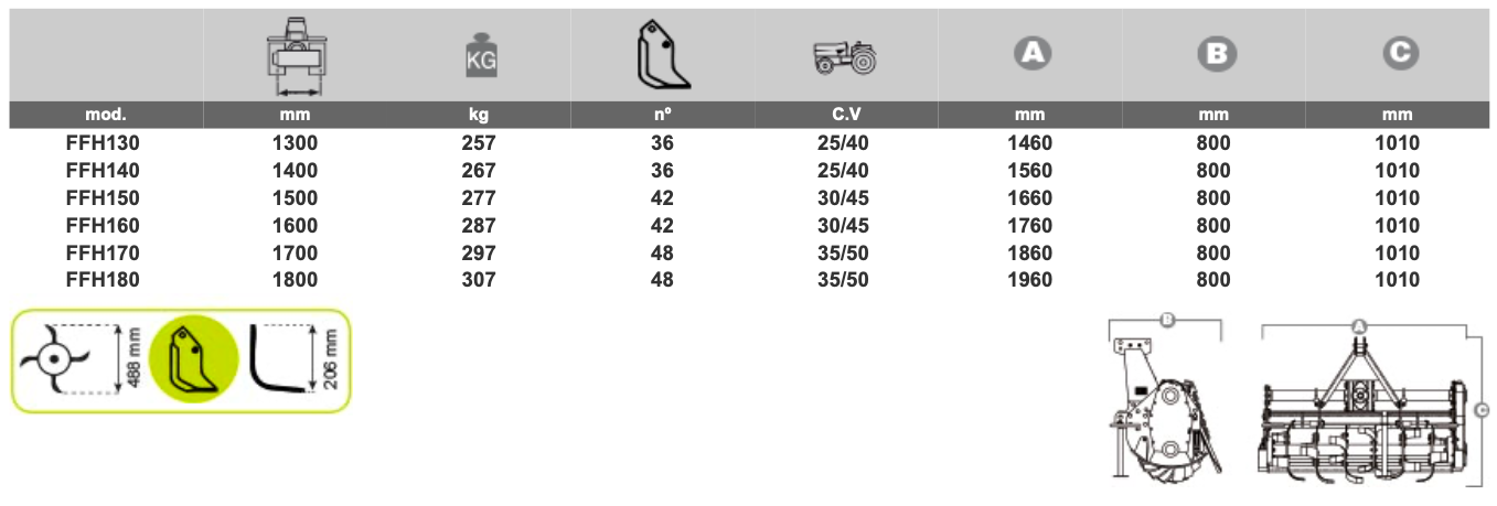✓ Nože s veľkou odolnosťou voči všetkým druhom pôdy