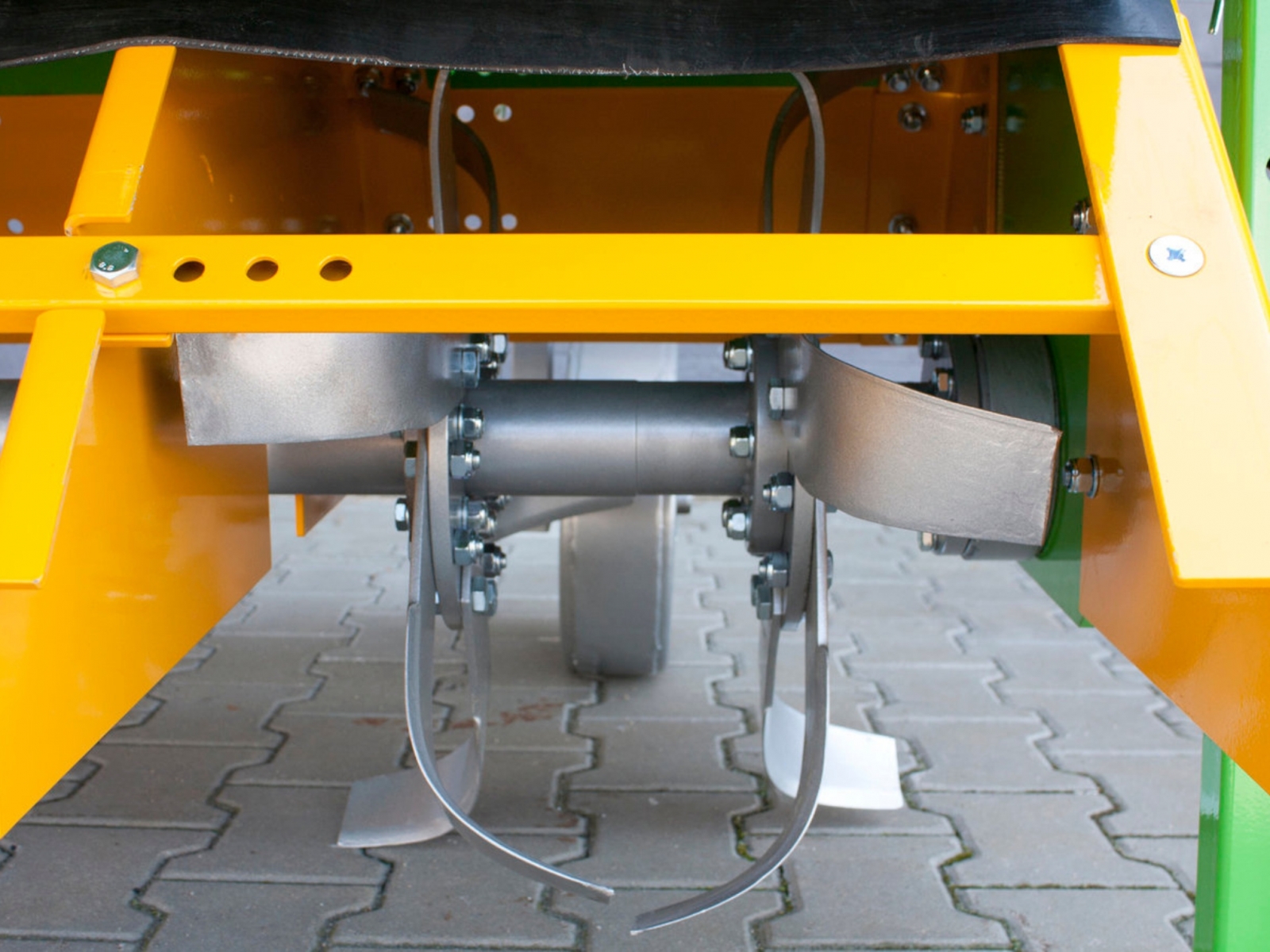 - stroj je vybavený špeciálnymi vnútornými prepážkami a čelnými stenami, ktoré chránia rastliny pred poškodením nožmi, zemou alebo kameňmi