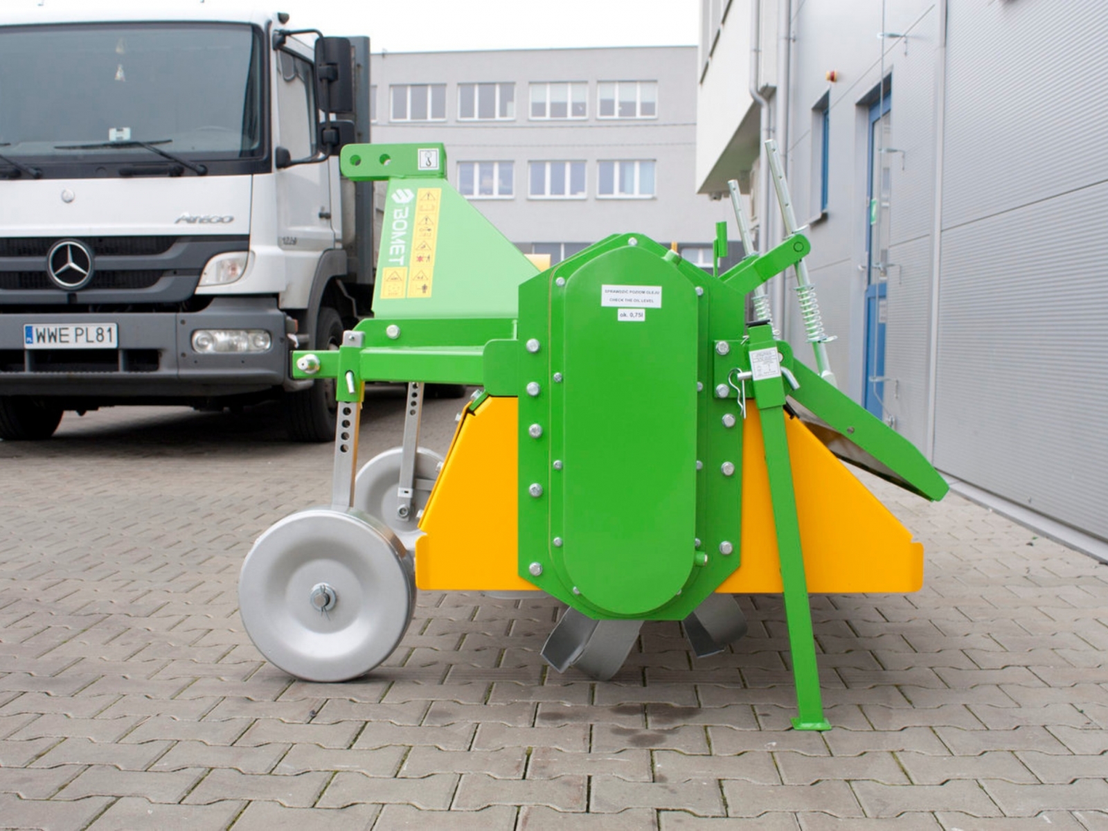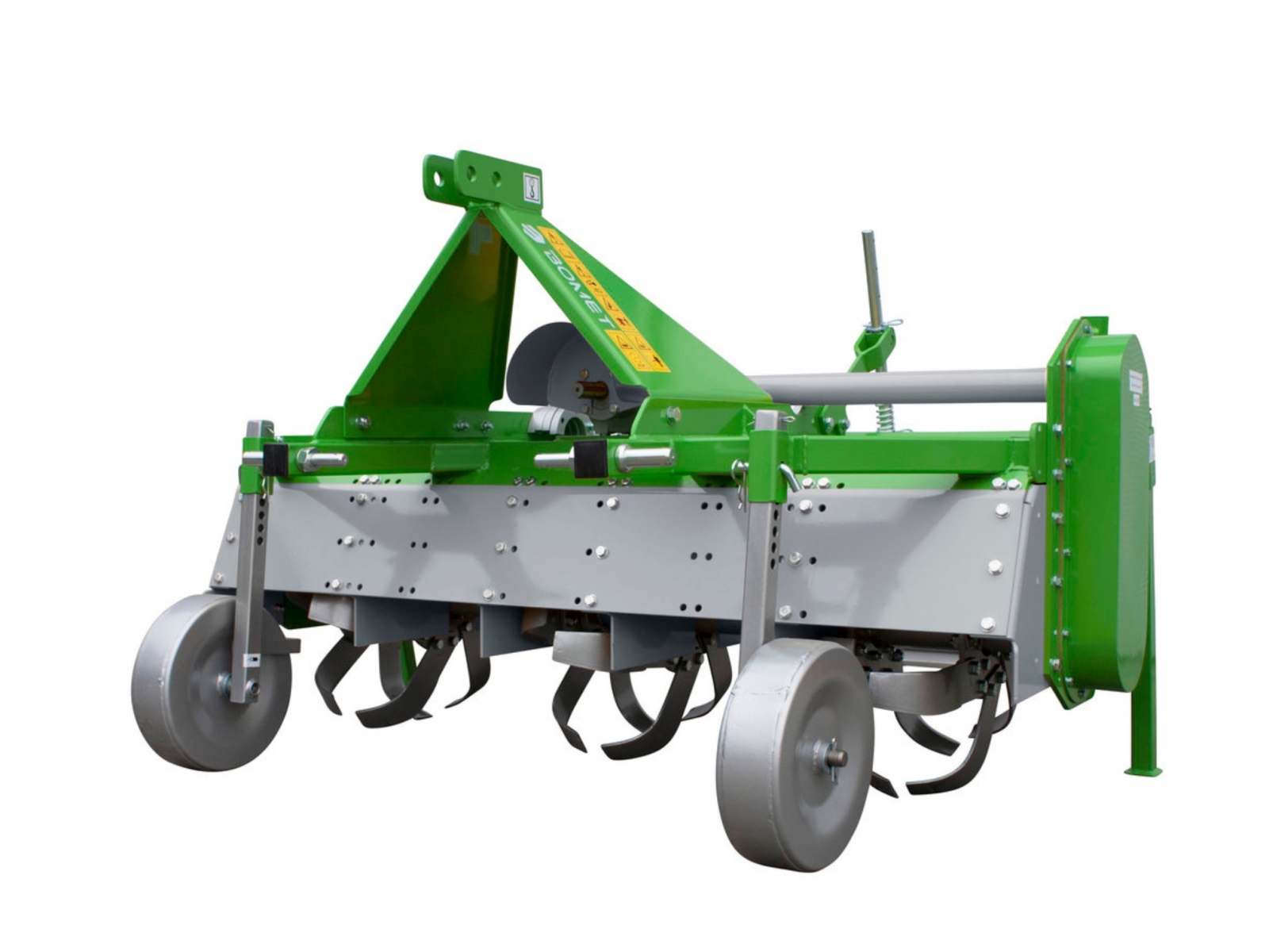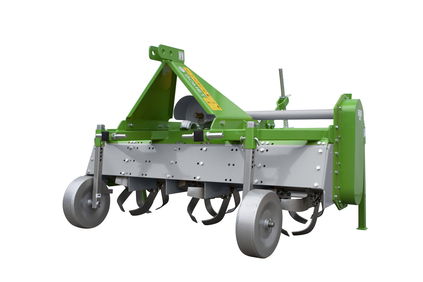 - rotor je štandardne prispôsobený na prácu s rozostupom riadkov cca 60 cm, s kyprenou šírkou medzi riadkami 30 cm