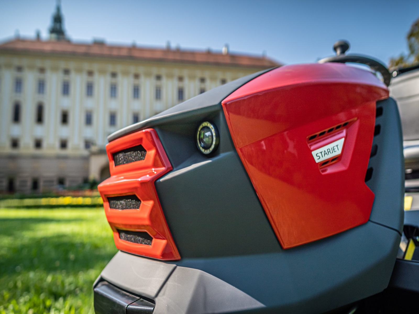 Stroj vlastnej konštrukcie s dvojrotorovým kosením umiestneným medzi nápravami. Vysokozdvižné vyklápanie zásobníka trávy na zem či do kontajnera. Nespornou výhodou je možné CELOROČNÉ VYUŽITIE. Pre viac informácií nahliadnite do príslušenstva. Potom Starjet P6 4×4 PRO využijete nielen na kosenie trávy od jari do jesene, ale celoročne. V zime so Starjetom 4×4 môžete upratovať sneh pomocou snehovej radlice s možnosťou doplnenia o rozmetadlo soli. Od jari do jesene potom môžete prevážať materiál pomocou sklopného vozíka alebo rozmetať hnojivo alebo trávnu zmes pomocou prípojného rozmetadla. V neposlednom rade je Starjet výborným pomocníkom pri jesennom zbere lístia.