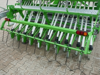 - Mechanický sejací stroj namontovaný na rotačnej bráne môže byť v závislosti od pôdnych podmienok vybavený radličkami , jednokotúčmi alebo dvojkotúčmi.