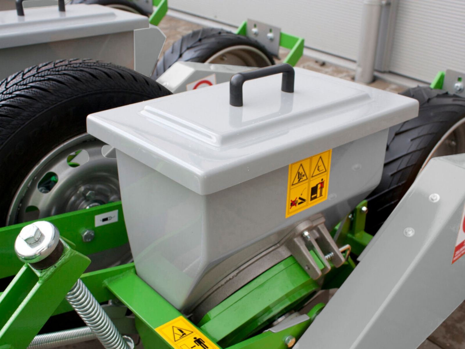 - Pre zvýšenie všestrannosti a zlepšenie hospodárnosti pracovných prejazdov môže byť sejačka vybavená dávkovačom hnojiva . Nádrž dávkovača hnojiva s objemom 70 dm³ je spojená s teleskopickými rúrami s popisovačmi. Agrotechnické požiadavky odporúčajú aplikovať hnojivo vedľa zasiatych semien. Správne tvarovaný fix umožňuje aplikovať hnojivo na správne miesto vo vzťahu k semenám.