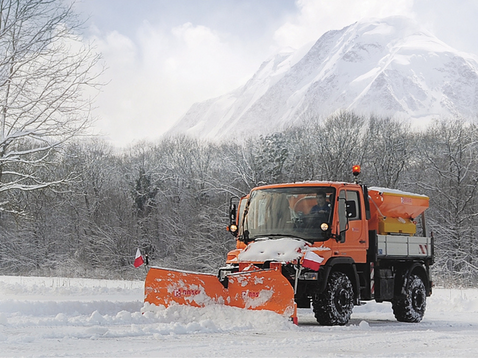V diagonálnej polohe pluh odpratáva sneh na ľavú alebo pravú stranu; poloha „A“ sa používa na prvý prejazd hlbokým snehom a odpratávanie úzkych priechodov, zatiaľ čo poloha „V“ je určená na zber snehu bez bočného vyhadzovania.