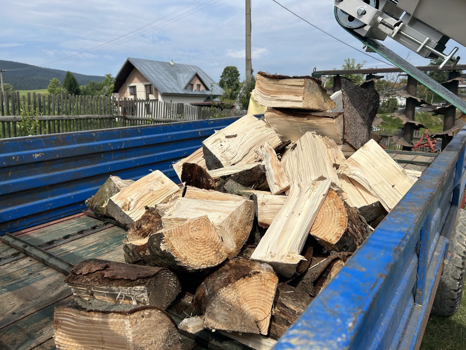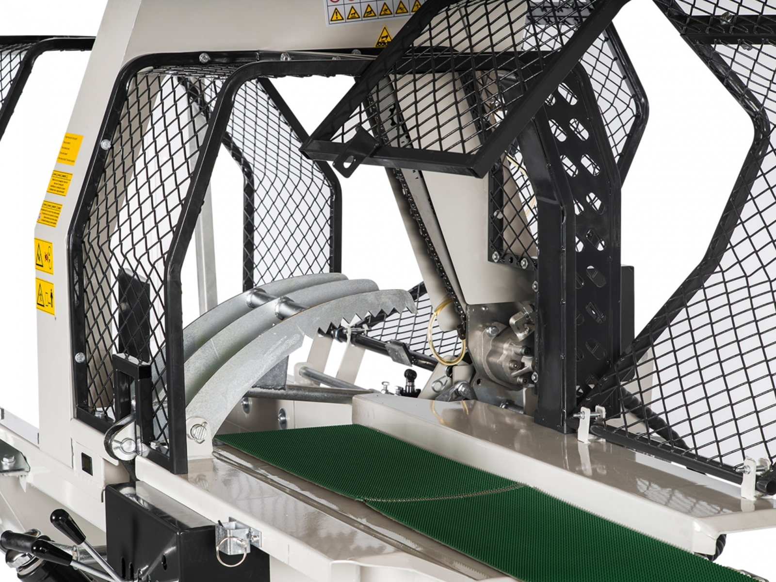 Hydraulická prevádzka reťazovej píly a držiaka guľatiny pre ešte menšiu námahu pri práci.