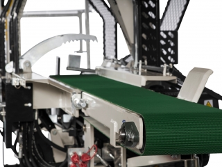 Automatický odber materiálu pomocou pásového dopravníka.
