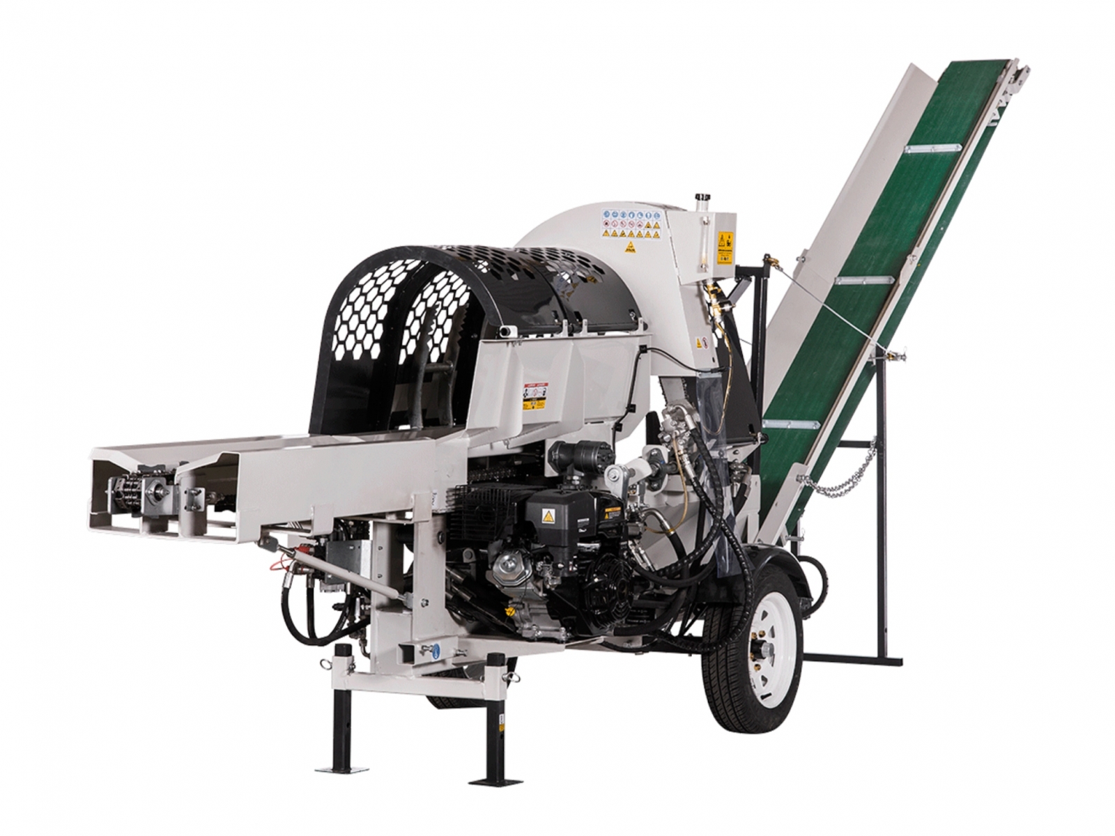 Hydraulická prevádzka reťazovej píly a držiaka guľatiny pre ešte menšiu námahu pri práci.