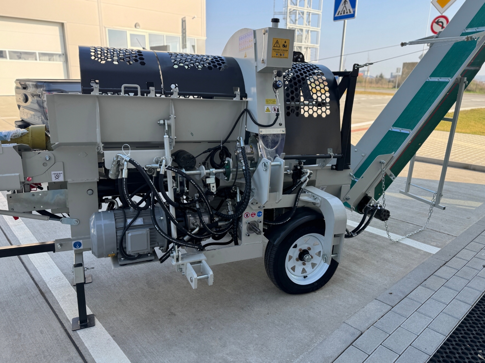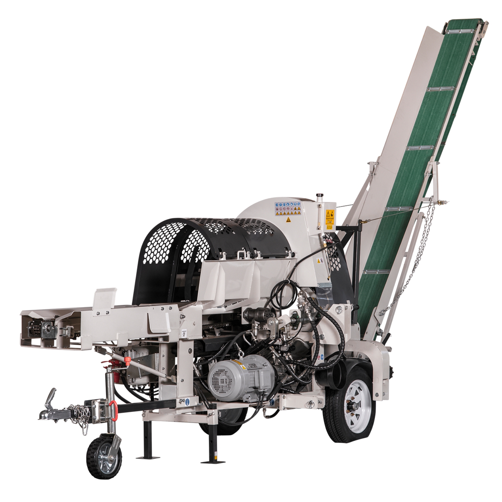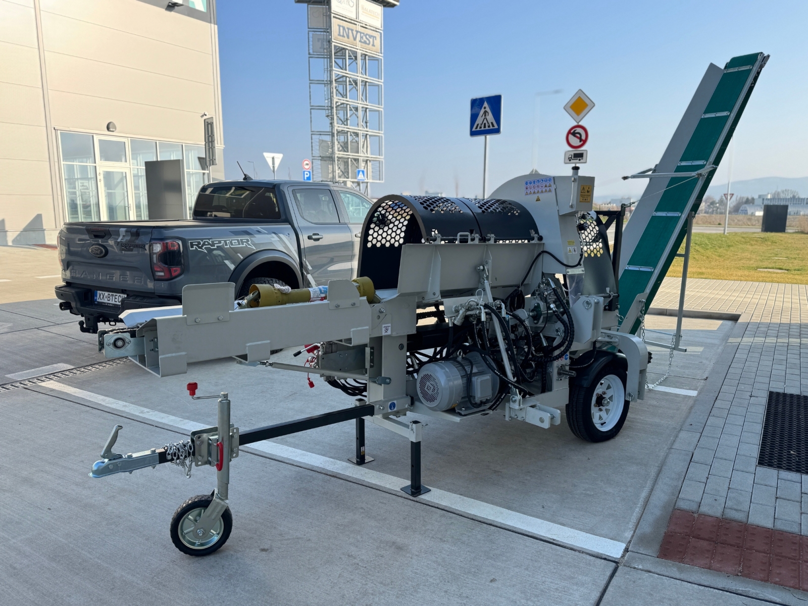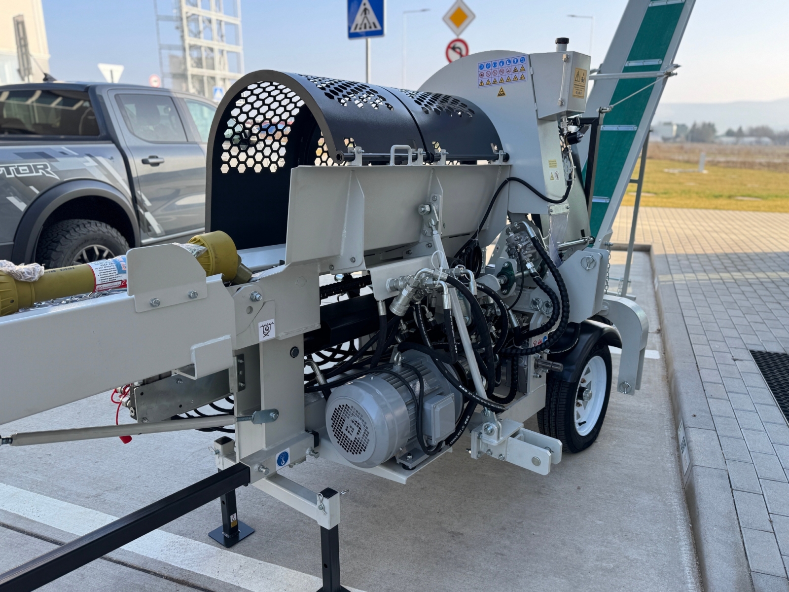 S dvoma možnosťami pohonu: Buď s výkonným 9,5 kW elektromotorom, alebo s pohonom vývodovým hriadeľom, pre rýchlu prácu aj s väčšími kmeňmi s priemerom do 50 cm.