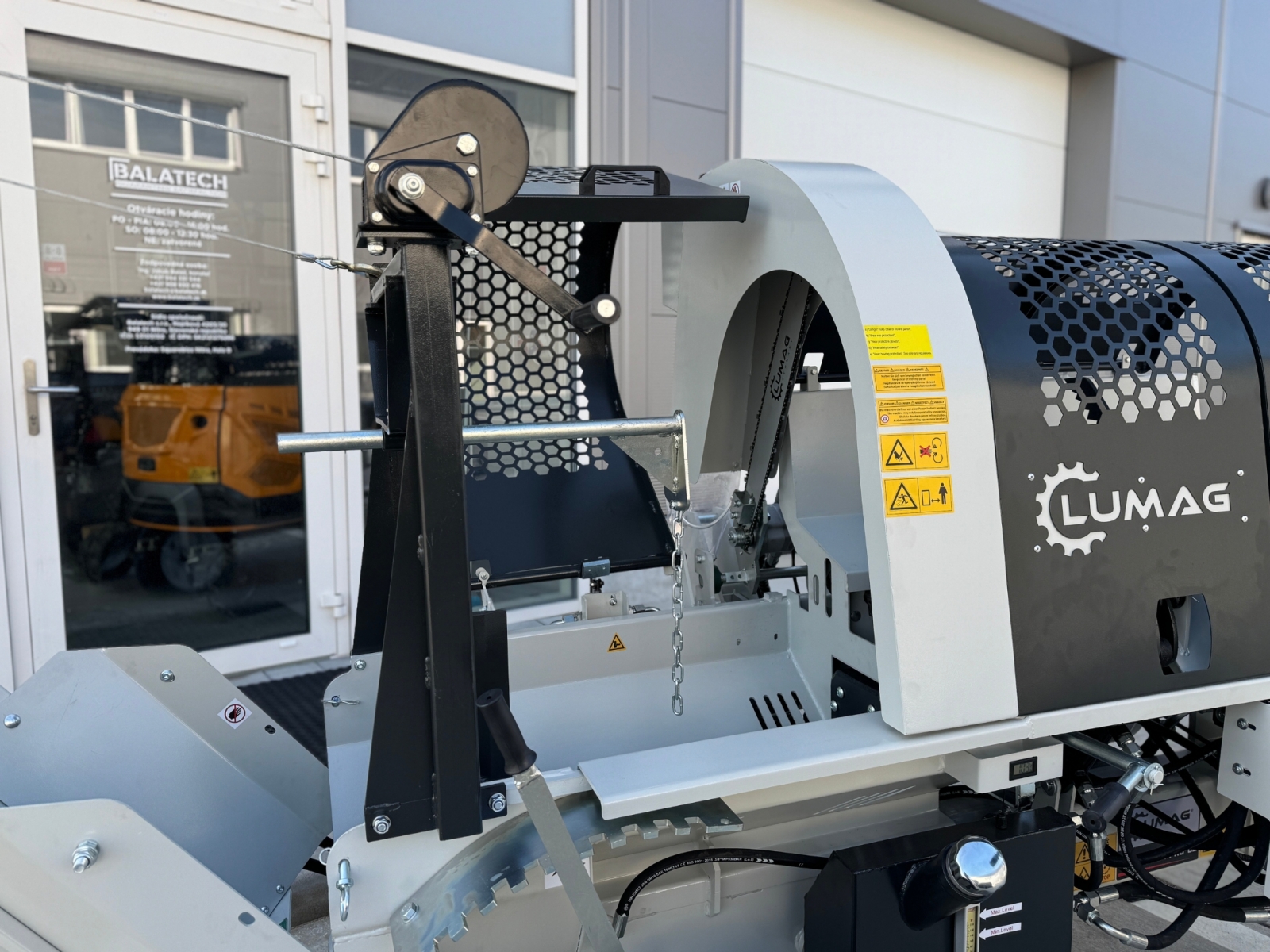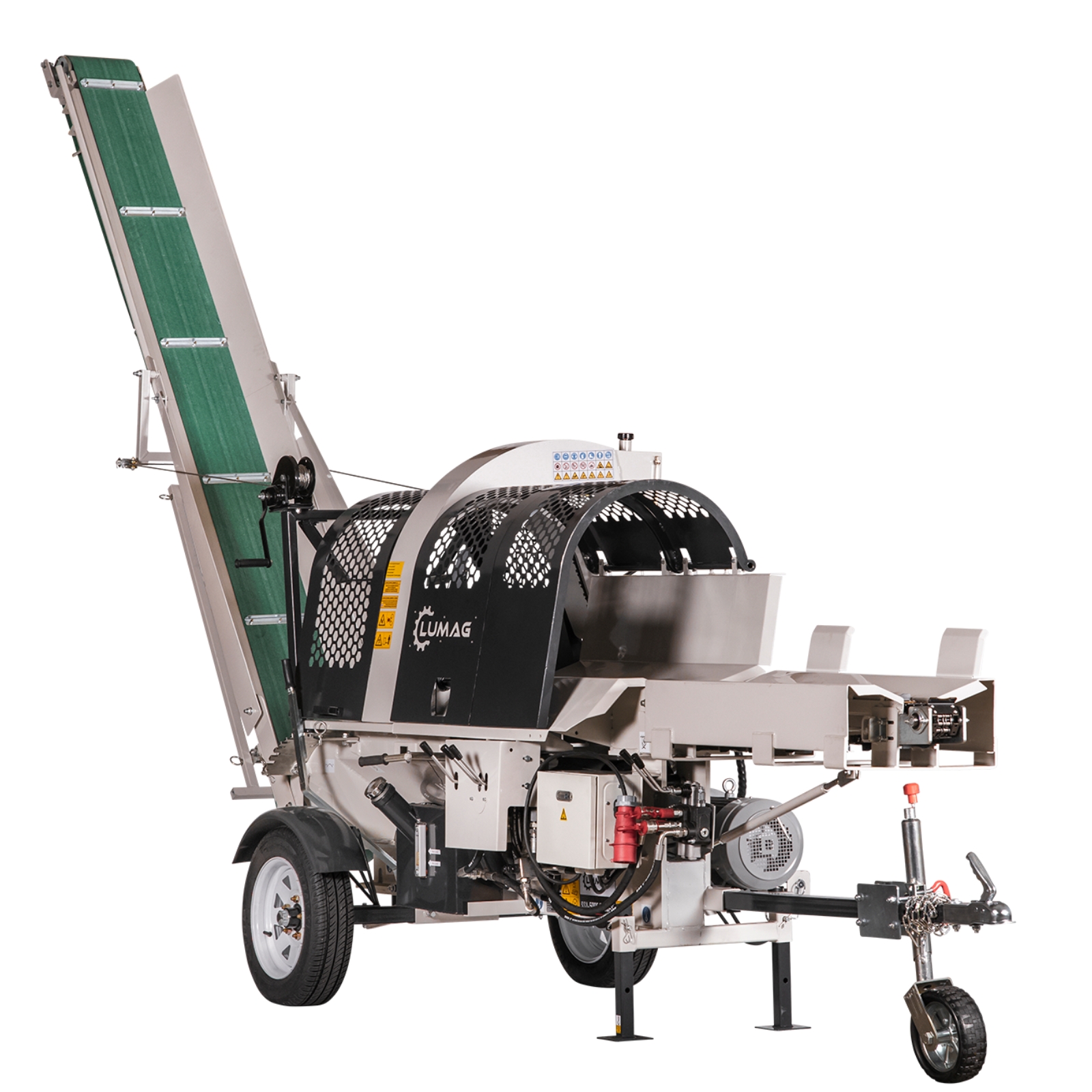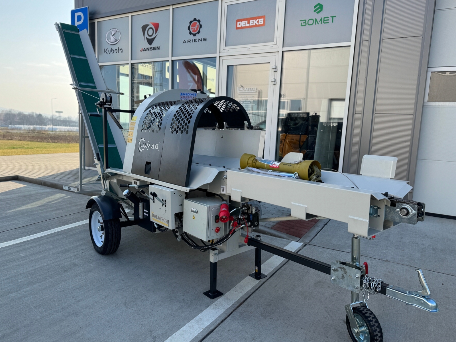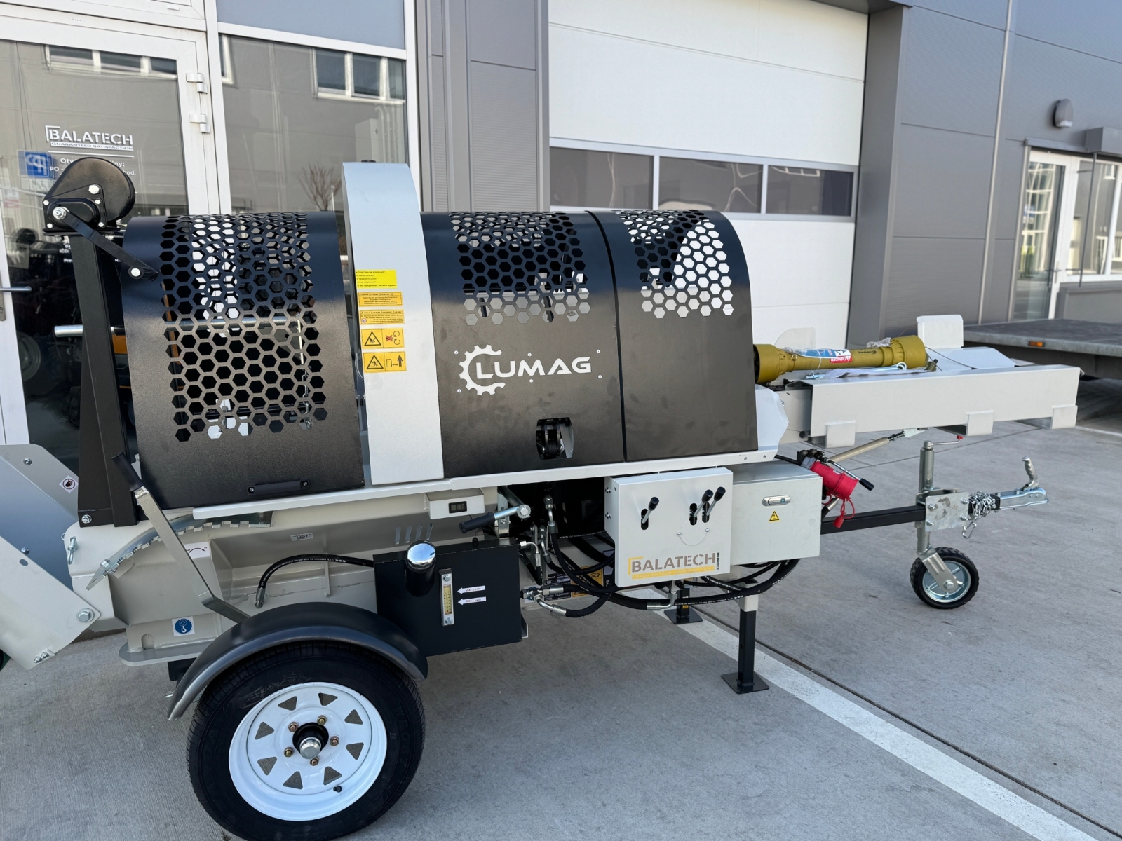 S dvoma možnosťami pohonu: Buď s výkonným 9,5 kW elektromotorom, alebo s pohonom vývodovým hriadeľom, pre rýchlu prácu aj s väčšími kmeňmi s priemerom do 50 cm.