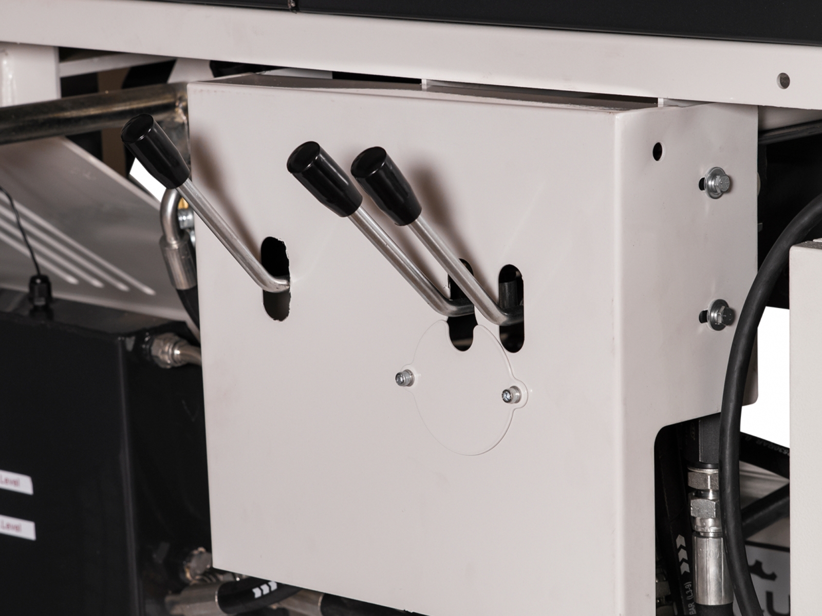 Hydraulické ovládanie motorovej píly a držiaka kmeňa zaisťuje rýchlu a jednoduchú prácu.