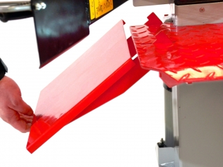 Štiepačka spĺňa novú normu EU pre bezpečnosť práce. K štandardnému obojručnému ovládaniu tak pribudlo nové, pevnejšie ukotvenie polien pri štiepaní a rozšírená pracovná doska.