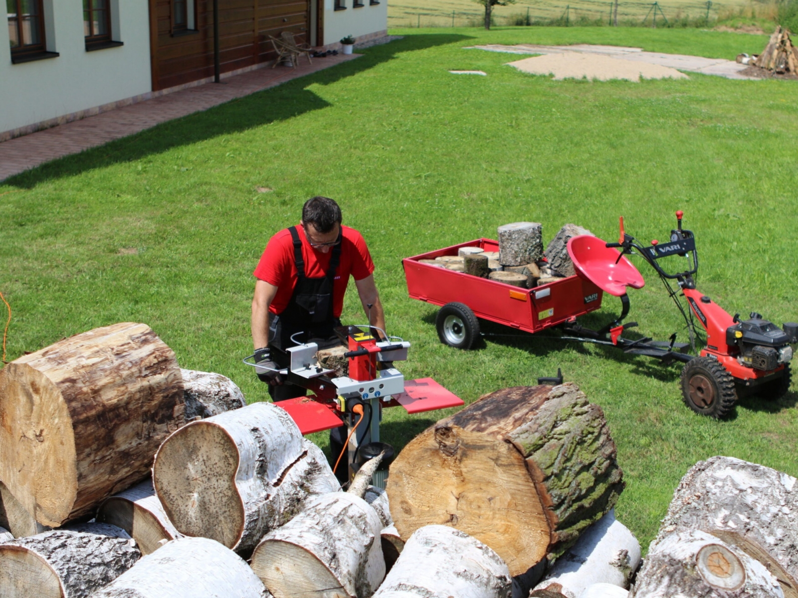 Vďaka pracovnej doske možno pohodlne deliť polená o dĺžke do 55 cm, ktoré sa používajú predovšetkým v krboch a kotloch.