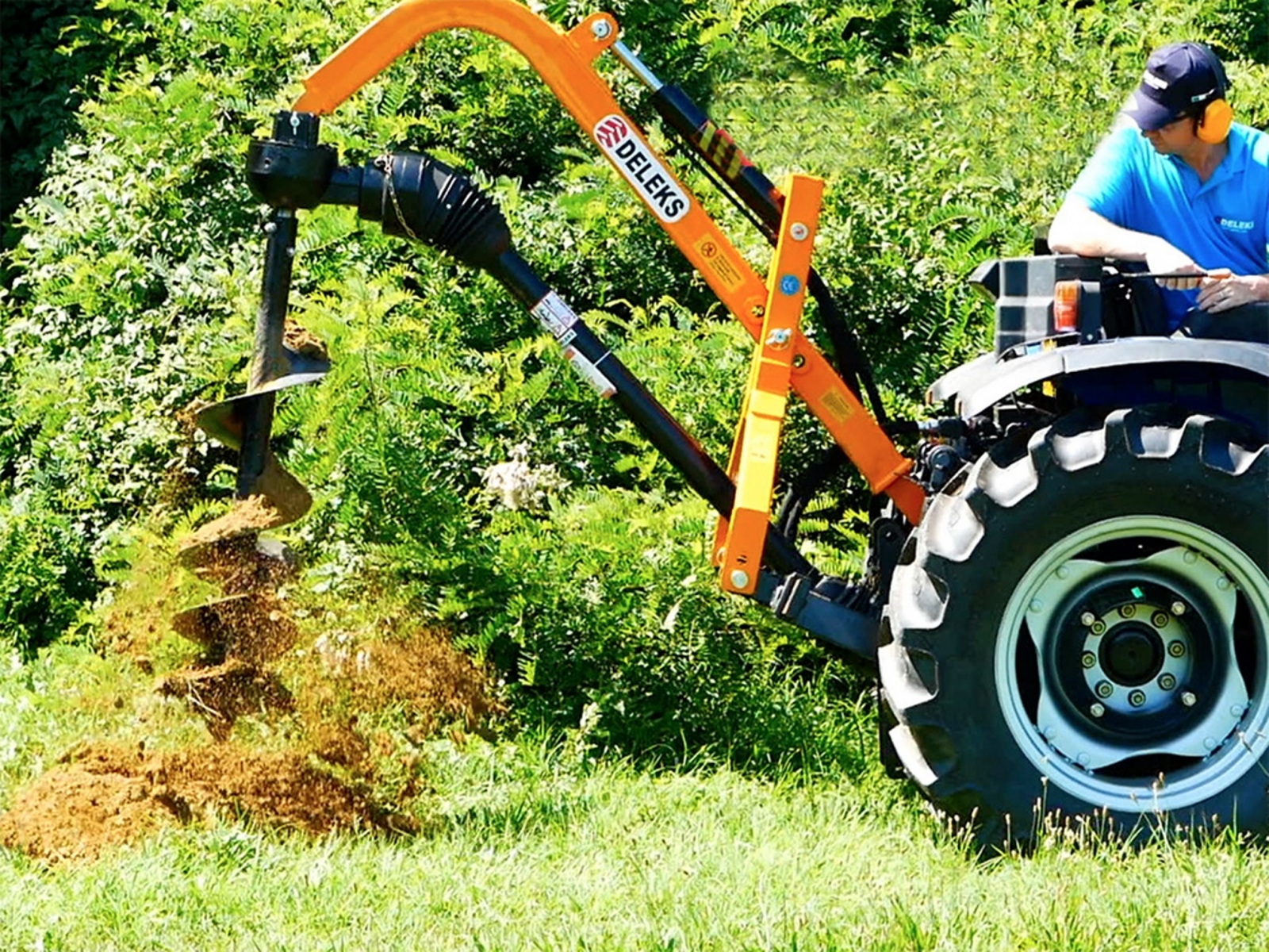 Hydraulická vrtná súprava za traktor DELEKS L-50H na univerzálny 3-bodový záves kat. I. a II. s ťažkou konštrukciou (rámom) a hydraulickým piestom. Vrtná súprava DELEKS L-50H je prídavne zariadenie za traktor/malotraktor. Slúži k vyvŕtaniu dier rôznych rozmerov do zeme. Stroj vyniká svojou robustnou a jednoduchou konštrukciou. Výhodou tohto zariadenia je jednoduchá manipulácia, údržba a vysoký výkon.