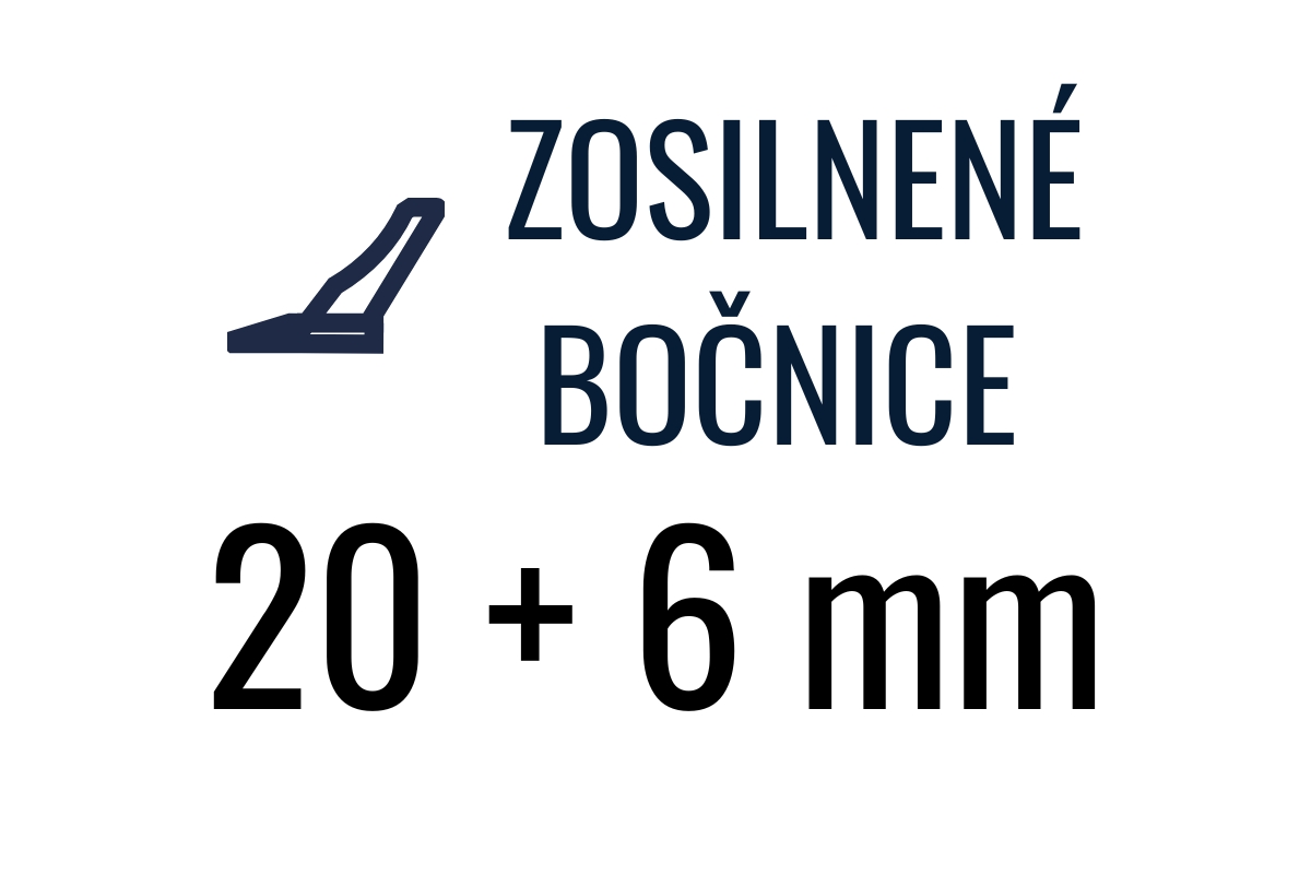 Zosilnené bočnice z ocele HB400 20 + 6 mm.