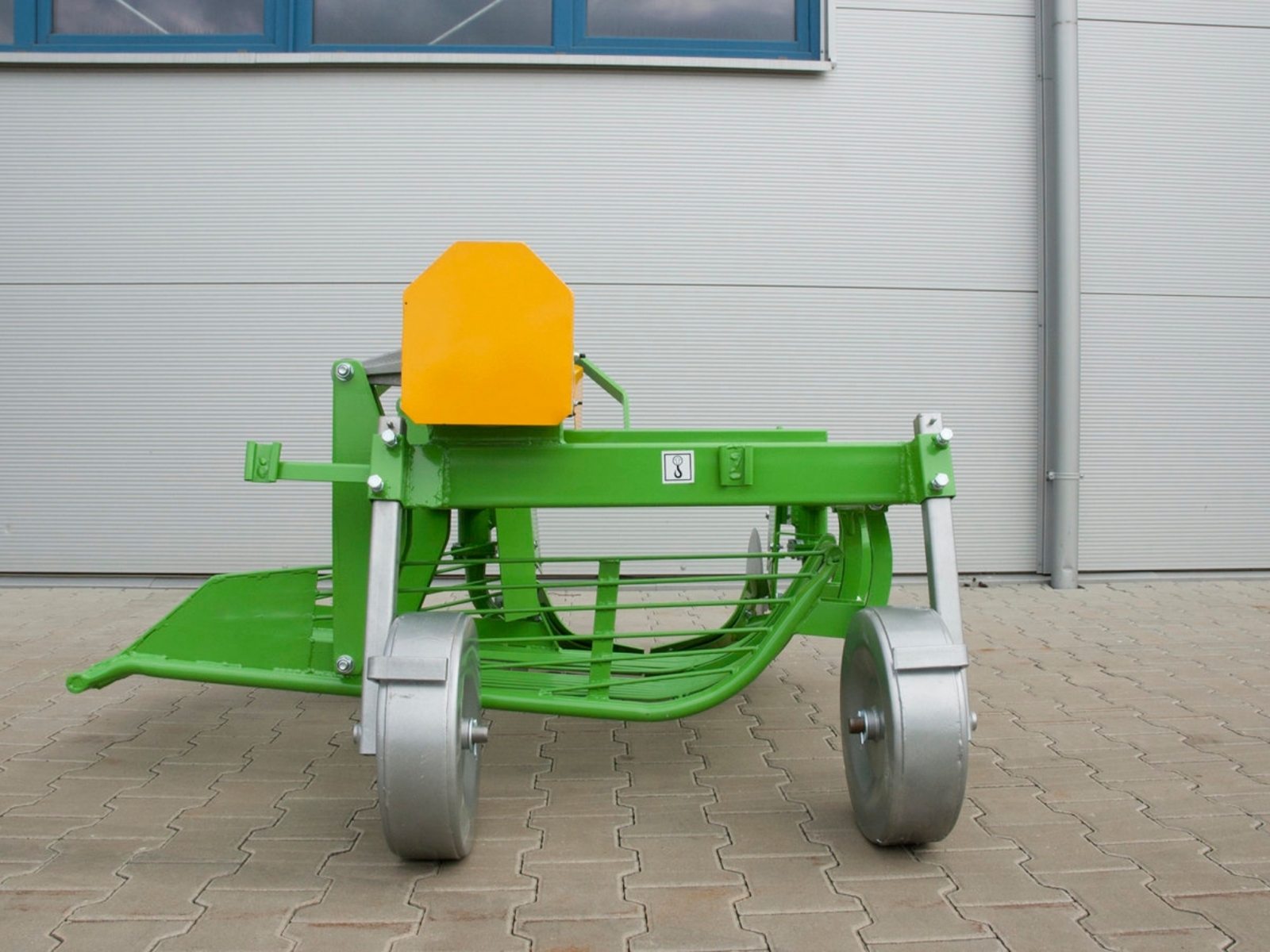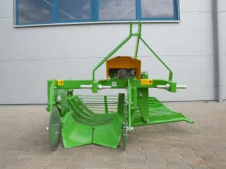 - dve sitá, pohybujúce sa v opačných smeroch, odstraňujú pôdu a ukladajú zeleninu do úzkych riadkov pozdĺž strojov