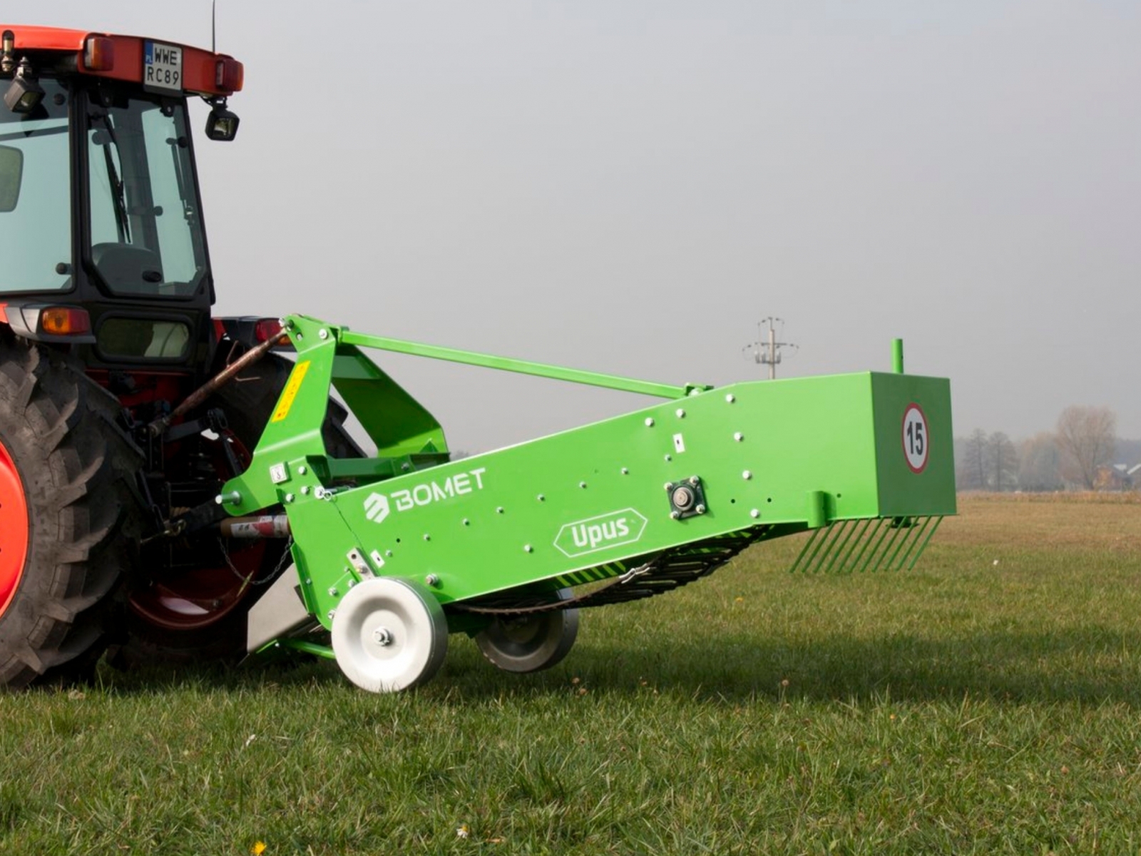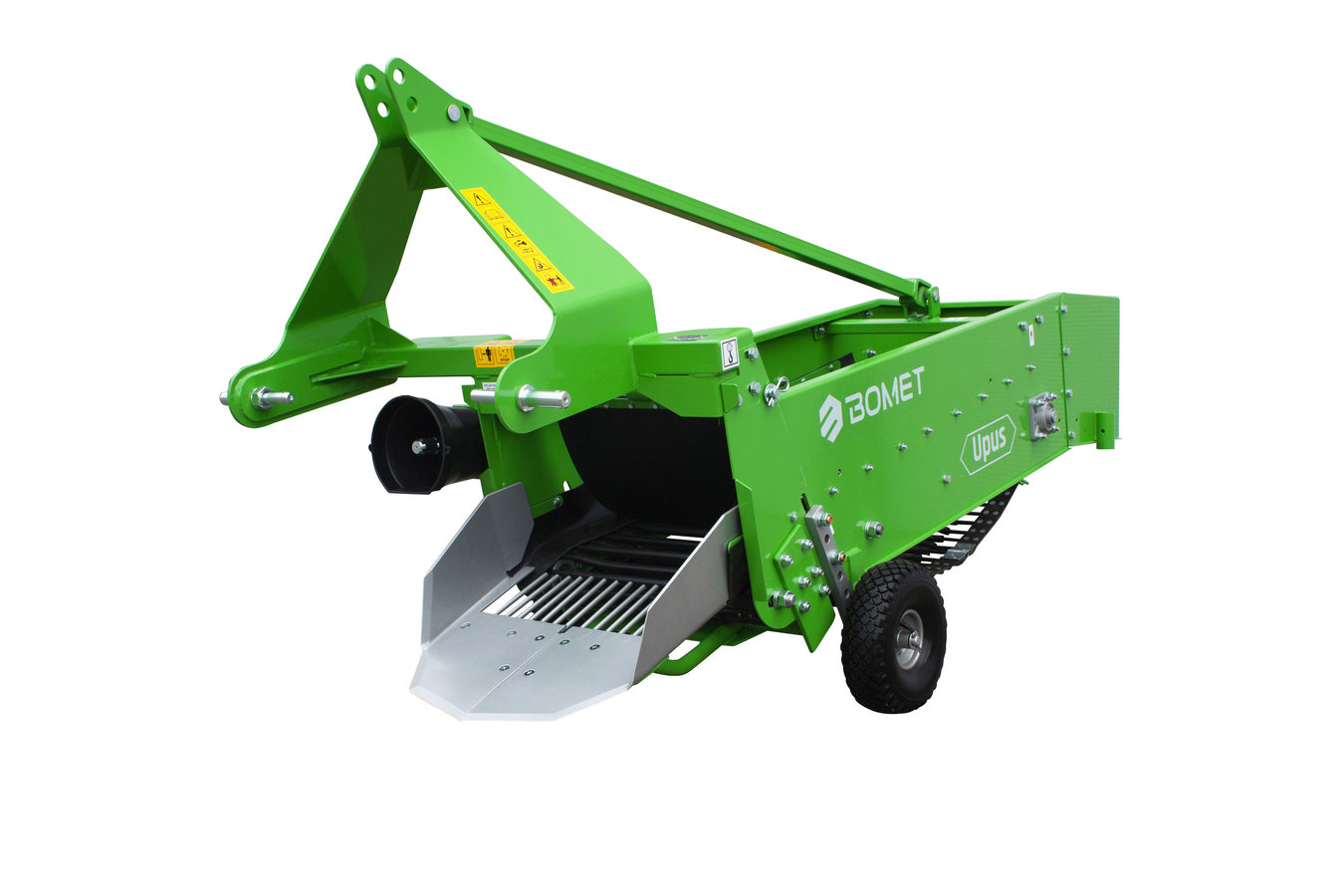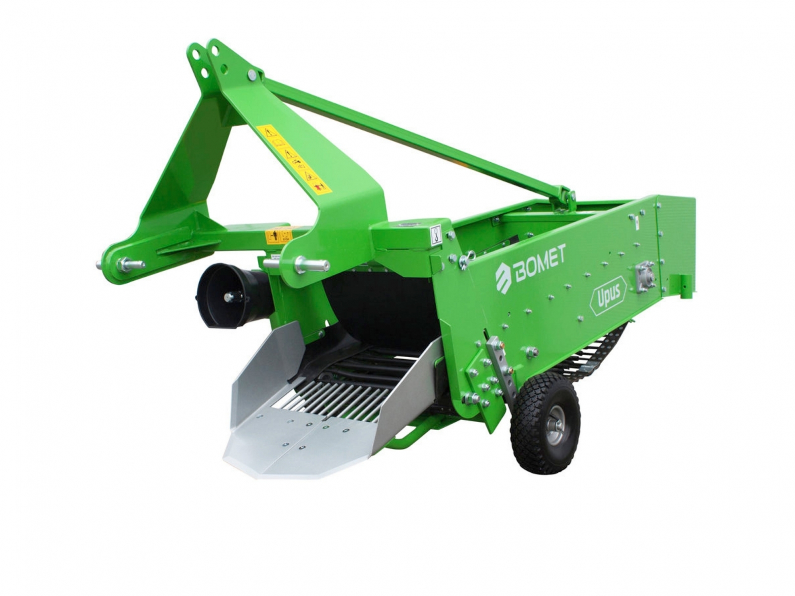 Jednoriadkový vyorávač zemiakov za traktor BOMET Upus je namontovaný na trojbodovom závese kat. II. a poháňaný traktorom. Dopravník vibráciami odstraňuje zeminu z vyoraných plodín a pokladá ju za seba na zem.