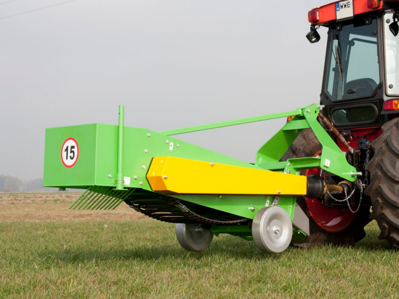 - v zadnej časti sa nachádza rošt, ktorý umožňuje umiestnenie vykopaných plodín a zabraňuje poškodenie plodín kolesami