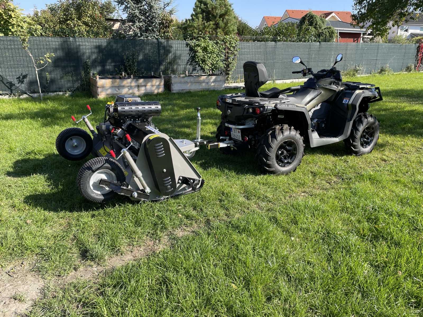 ✓ Mulčovač je pripojený štandardnou guľovou hlavou k ťažnému vozidlu.