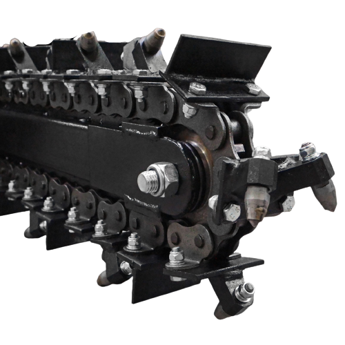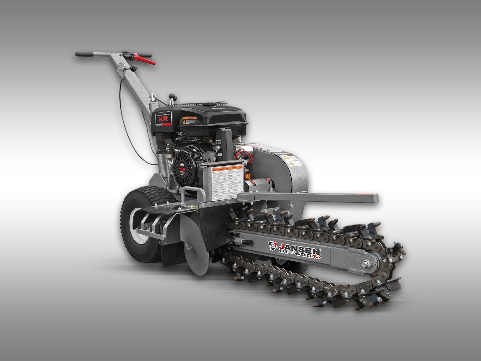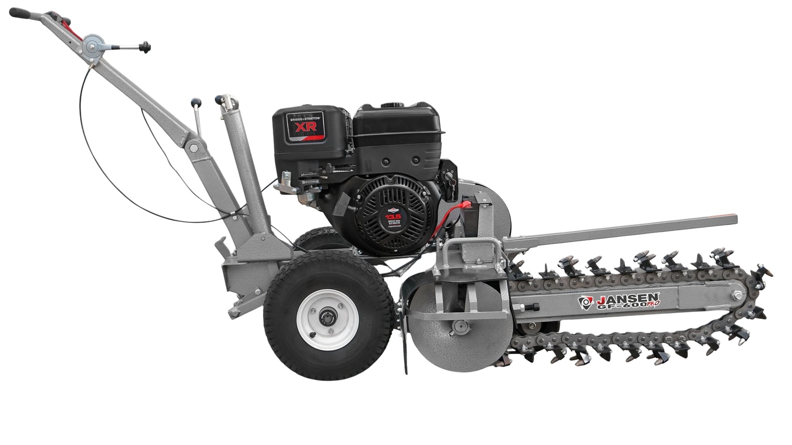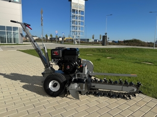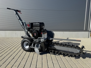 Zemná fréza GF-600pro vytvára zákopy a drážky so šírkou 10 cm a hĺbkou 60 cm. Tento model je vybavený výkonným štvortaktným benzínovým motorom Briggs & Stratton s výkonom 15 HP a poskytuje potrebný výkon aj v náročnejších pôdnych podmienkach. Použitie značkového motora zaručuje kvalitu, odolnosť a spoľahlivú prevádzku. Robustná rezná reťaz je vybavená 27 jednotlivo vymeniteľnými reznými zubami z karbidovej zliatiny a zaisťuje vysokú účinnosť. Dlhá čepeľ umožňuje maximálnu pracovnú hĺbku, zatiaľ čo integrovaný šnek prepravuje vykopaný materiál do strany – pre čisté stavenisko a výkopovú kapacitu až 60 m za hodinu.